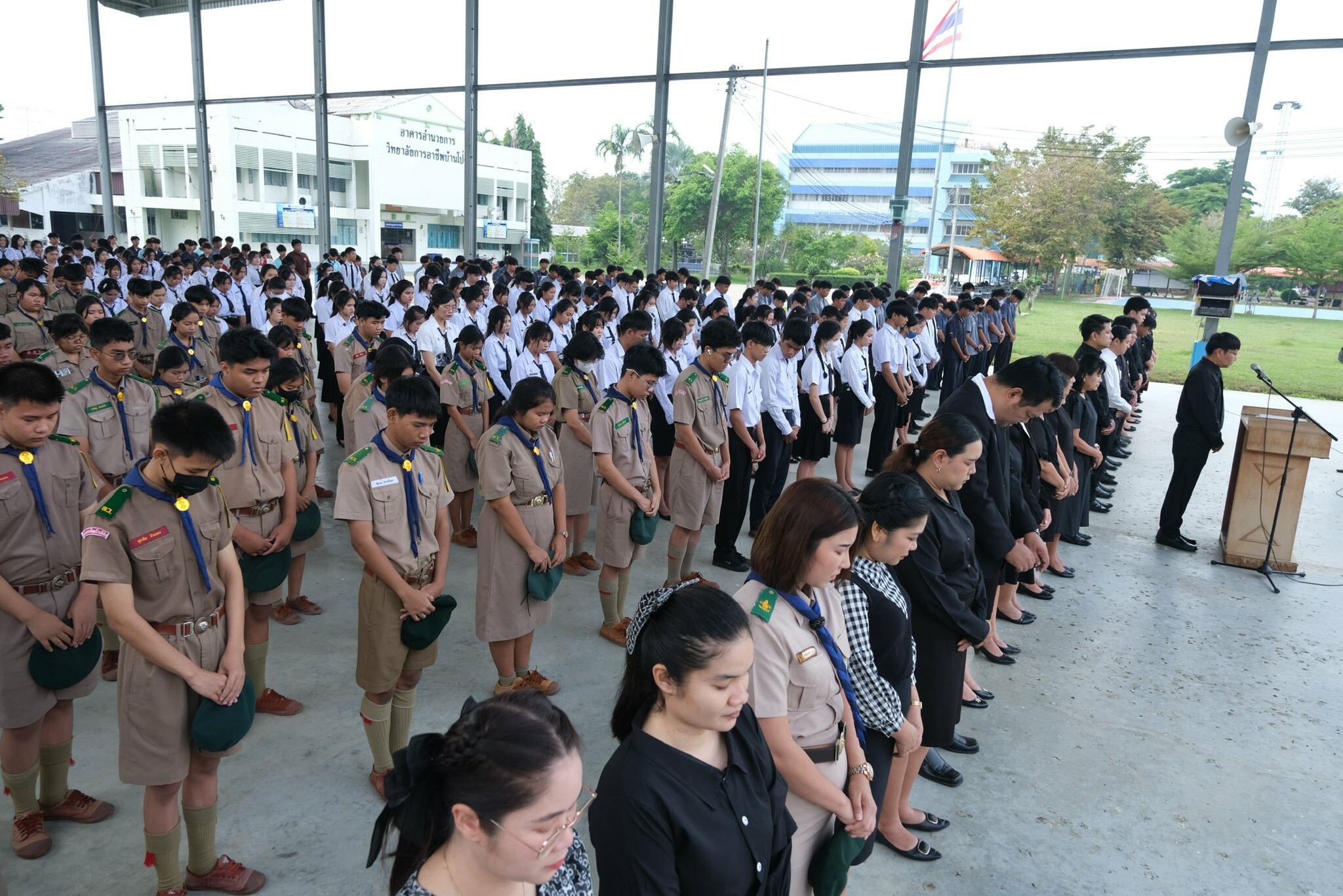วันที่ 28 ตุลาคม 2568 กิจกรรมหน้าเสาธง วิทยาลัยการอาชีพบ้านโป่ง ขอน้อมรำลึกในพระมหากรุณาธิคุณอันหาที่สุดมิได้ และเพื่อแสดงความอาลัยอย่างสูงสุด คณะผู้บริหาร คณะครู บุคลากรทางการศึกษา และนักเรียน นักศึกษา ทุกคน ยืนสงบนิ่งเป็นเวลา 93 วินาที เพื่อถวายความอาลัยและน้อมรำลึกในพระมหากรุณาธิคุณของพระองค์ สมเด็จพระนางเจ้าสิริกิติ์ พระบรมราชินีนาถ พระบรมราชชนนีพันปีหลวง เสด็จสู่สวรรคาลัย 24 ตุลาคม 2568