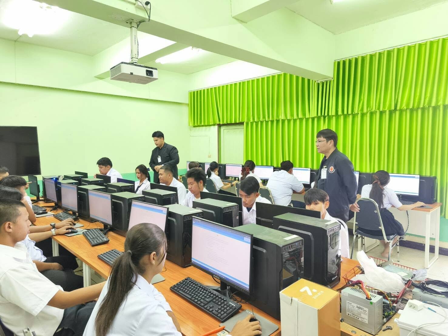 วันที่ 17 มกราคม 2569 ดร.พัฒนกิจ วงค์ลาศ ผู้อำนวยการวิทยาลัยการอาชีพบ้านโป่ง พร้อมด้วย นายณัฐวุฒิ พุทธวงค์ รองผู้อำนวยการ และกรรมการคุมสอบ จัดการทดสอบทางการศึกษาระดับชาติด้านอาชีวศึกษา(V-Net) ประจำปีการศึกษา 2568 ระดับประกาศนียบัตรวิชาชีพชั้นปีที่ 3 มีวัตถุประสงค์เพื่อทดสอบ ความรู้และประเมินความพร้อมในการเข้าสู่โลกอาชีพทักษะในศตวรรษที่ 21 ของนักเรียนและใช้เป็นข้อมูลในการปรับปรุงและพัฒนาการจัดการเรียนการสอน ณ สนามสอบวิทยาลัยการอาชีพบ้านโป่ง