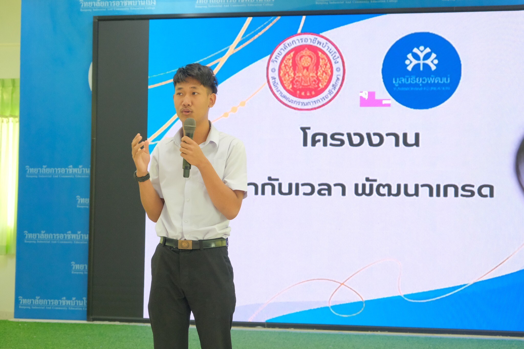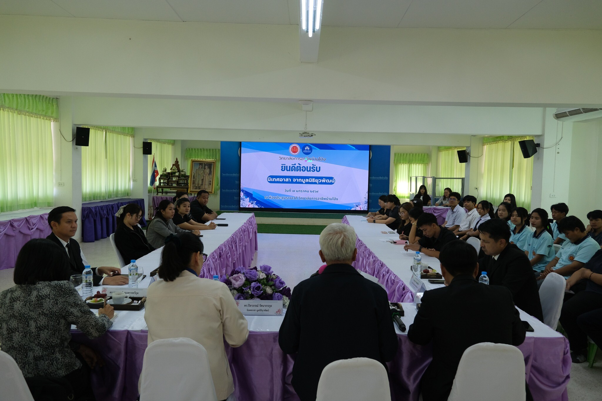 วันที่ 7 มกราคม 2569 ดร.พัฒนกิจ วงค์ลาศ ผู้อำนวยการวิทยาลัยการอาชีพบ้านโป่ง พร้อมด้วยคณะผู้บริหาร คณะครู บุคลากรทางการศึกษา และนักเรียน นักศึกษา ร่วมต้อนรับ ผอ.โอภาส เจริญเชื้อ หัวหน้า Node นิเทศอาสา ,ดร.ปิยาภรณ์ รัตนากรกุล และดร.ชยาภรณ์ ศฤงคารทวีกุล นิเทศอาสา โรงเรียนพัฒนาคุณธรรม มูลนิธิยุวพัฒน์ ในการนิเทศติดตามการขับเคลื่อนโครงการสถานศึกษาคุณธรรมและร่วมเสนอแนะแนวทางเพื่อเตรียมความพร้อมรับการประเมินแหล่งเรียนรู้ด้านคุณธรรม จริยธรรม ณ ห้องประชุมราชาวดี