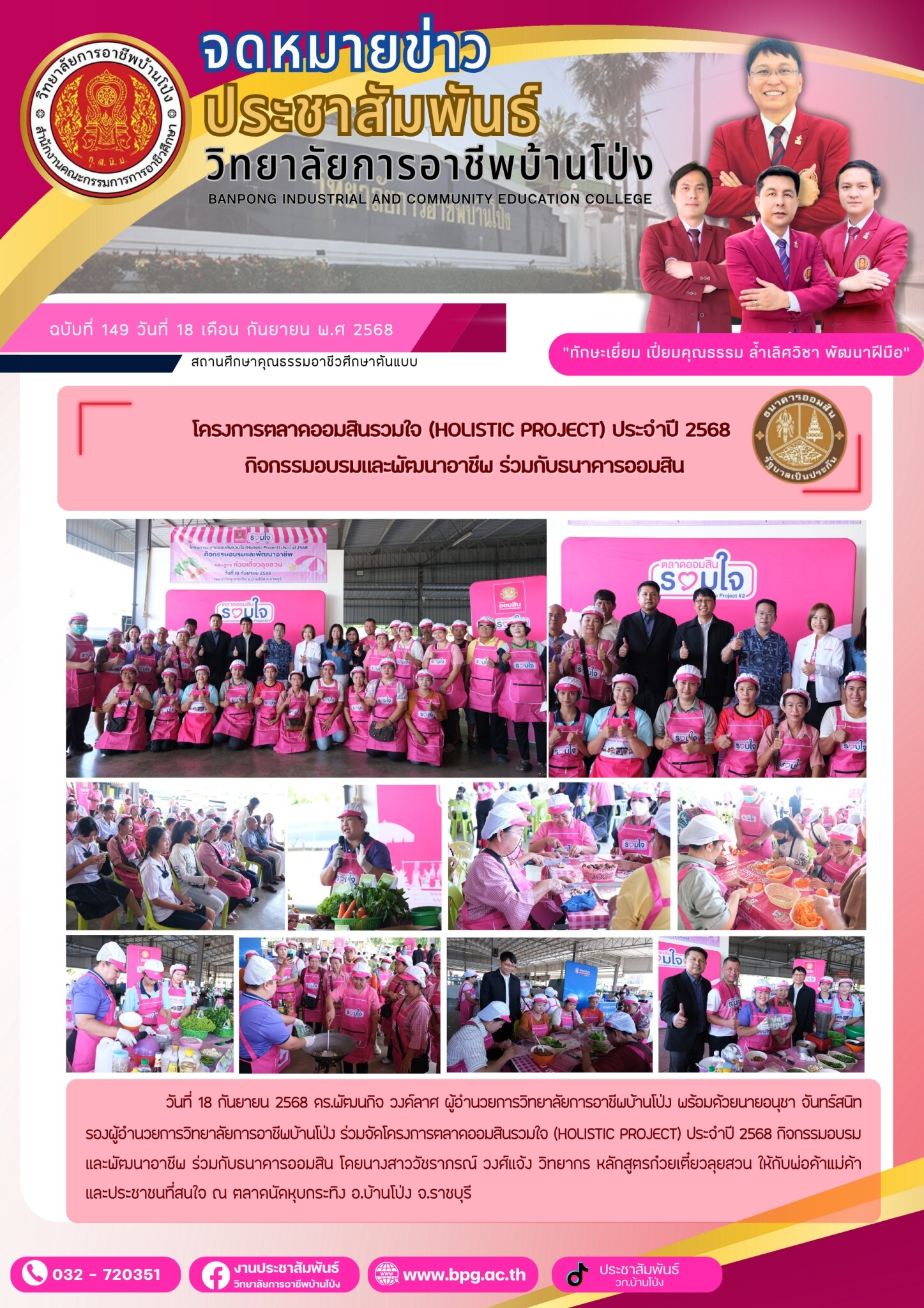 ฉบับที่ 149 โครงการตลาดออมสินรวมใจ (HOLISTIC PROJECT) ประจำปี2568 กิจกรรมอบรมและพัฒนาอาชีพ ร่วมกับธนาคารออมสิน 18 กันยายน 256826 กันยายน 2025 นายดนุวัช ด้วงแพง จดหมายข่าว นายดนุวัช ด้วงแพง
