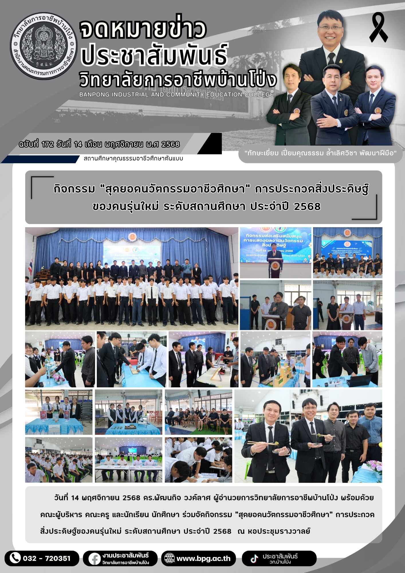 ฉบับที่ 172 กิจกรรม “สุดยอดนวัตกรรมอาชีวศึกษา” การประกวดสิ่งประดิษฐ์ของคนรุ่นใหม่ ระดับสถานศึกษา ประจำปี 2568 14 พฤศจิกายน 256823 พฤศจิกายน 2025 นายดนุวัช ด้วงแพง จดหมายข่าว นายดนุวัช ด้วงแพง