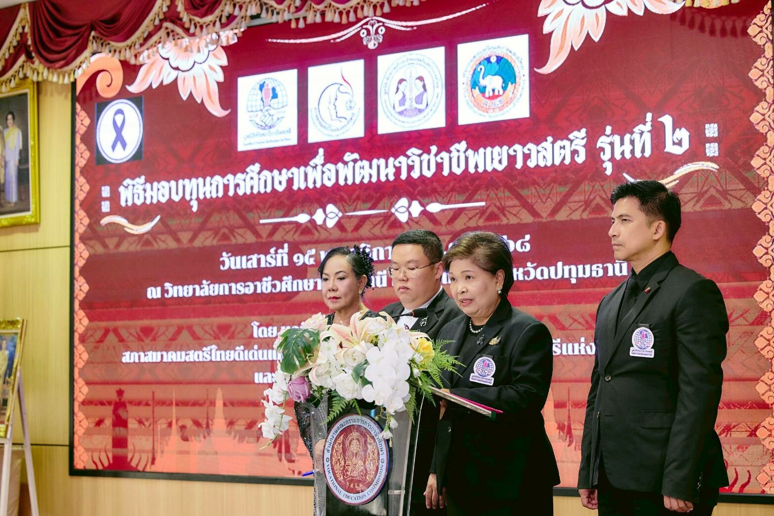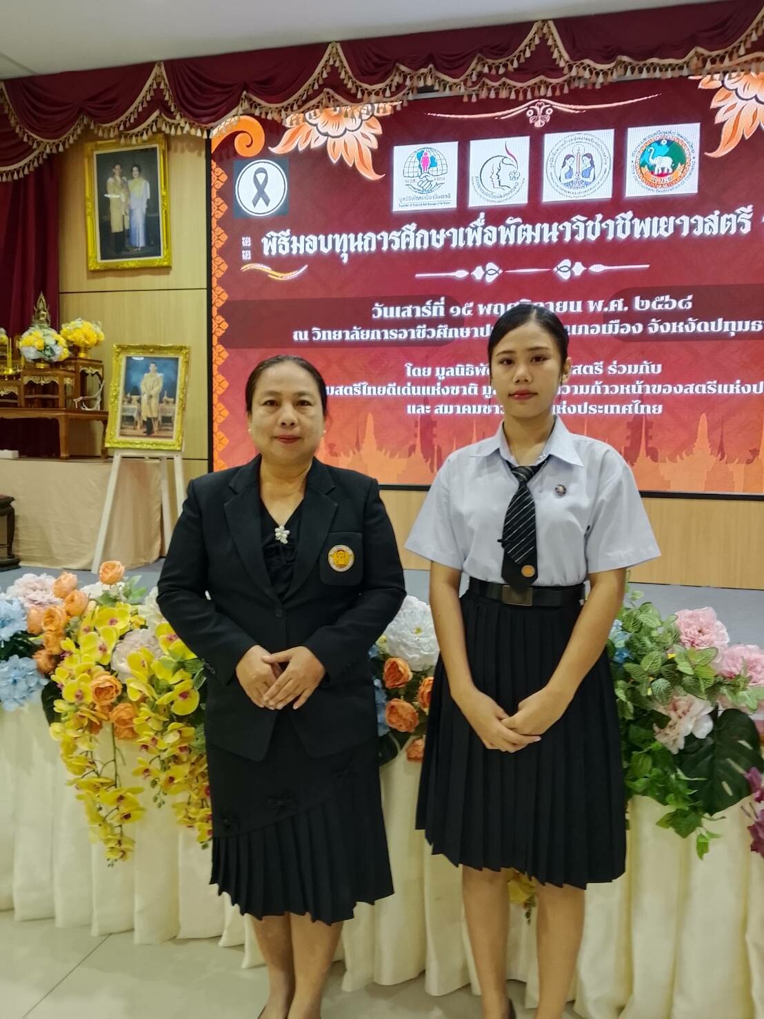 วันที่ 15 พฤศจิกายน 2568 ดร.พัฒนกิจ วงค์ลาศ ผู้อำนวยการวิทยาลัยการอาชีพบ้านโป่ง มอบหมาย นางปาริศรา นูมหันต์ หัวหน้างานแนะแนวฯ วิทยาลัยการอาชีพบ้านโป่ง ได้นำนักเรียน นางสาวพนิดา เนตรพรม ระดับชั้น ปวช.2 สาขาวิชาการบัญชี เข้ารับทุนการศึกษา โครงการทุนการศึกษาเพื่อพัฒนาวิชาชีพเยาวสตรี รุ่นที่ 2 จำนวนเงิน 15,000 บาท ณ ห้องประชุมปทุมรัตน์ วิทยาลัยอาชีวศึกษาปทุมธานี จังหวัดปทุมธานี