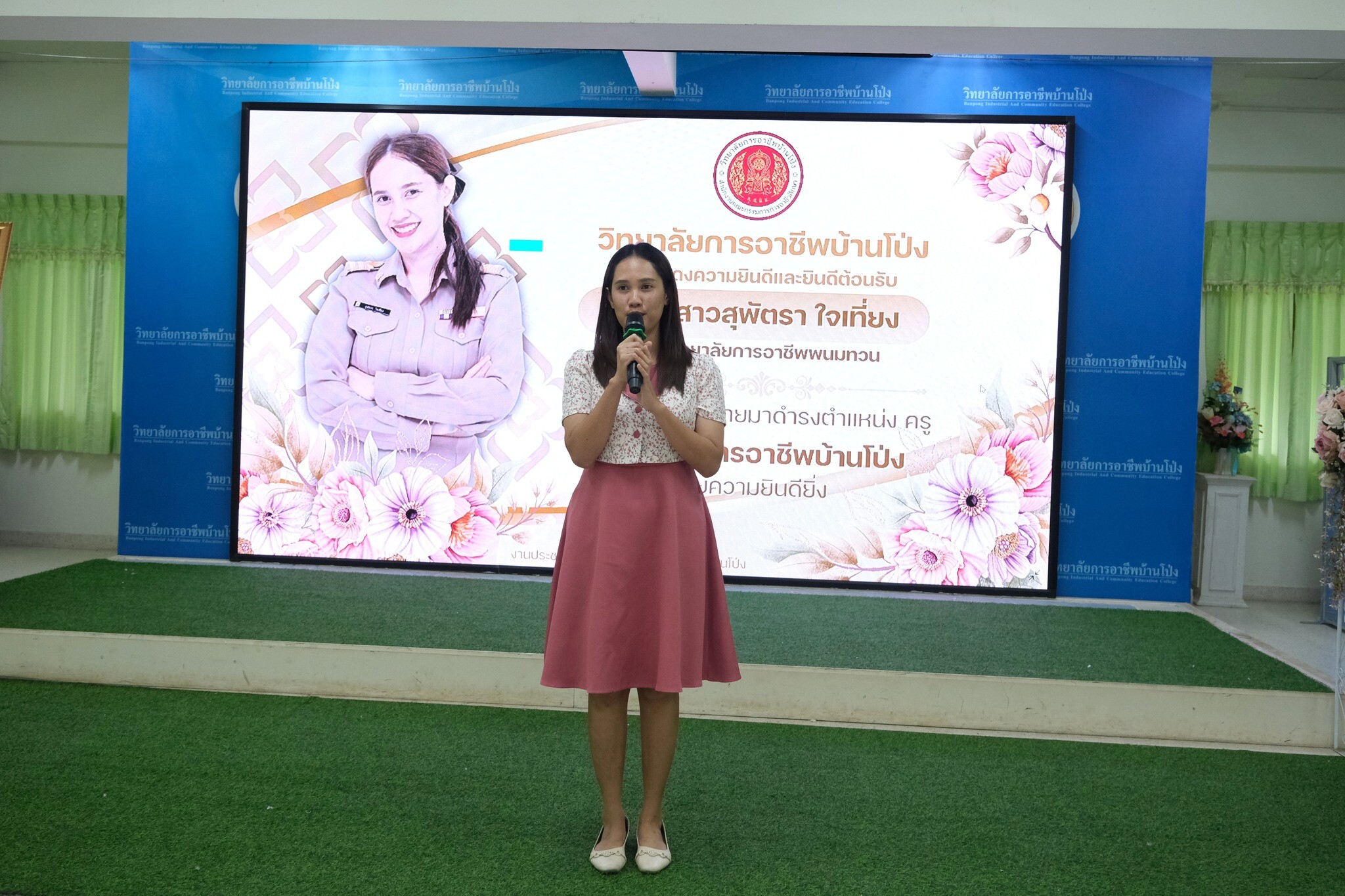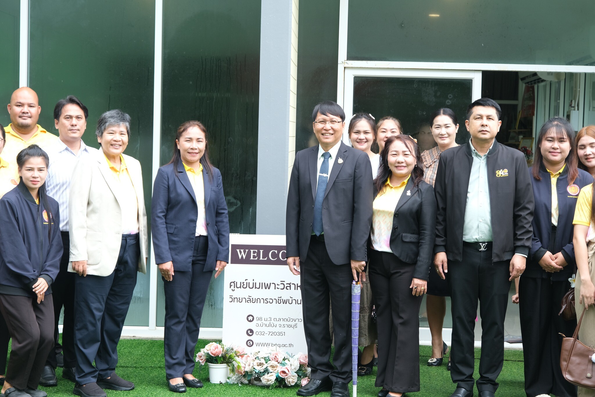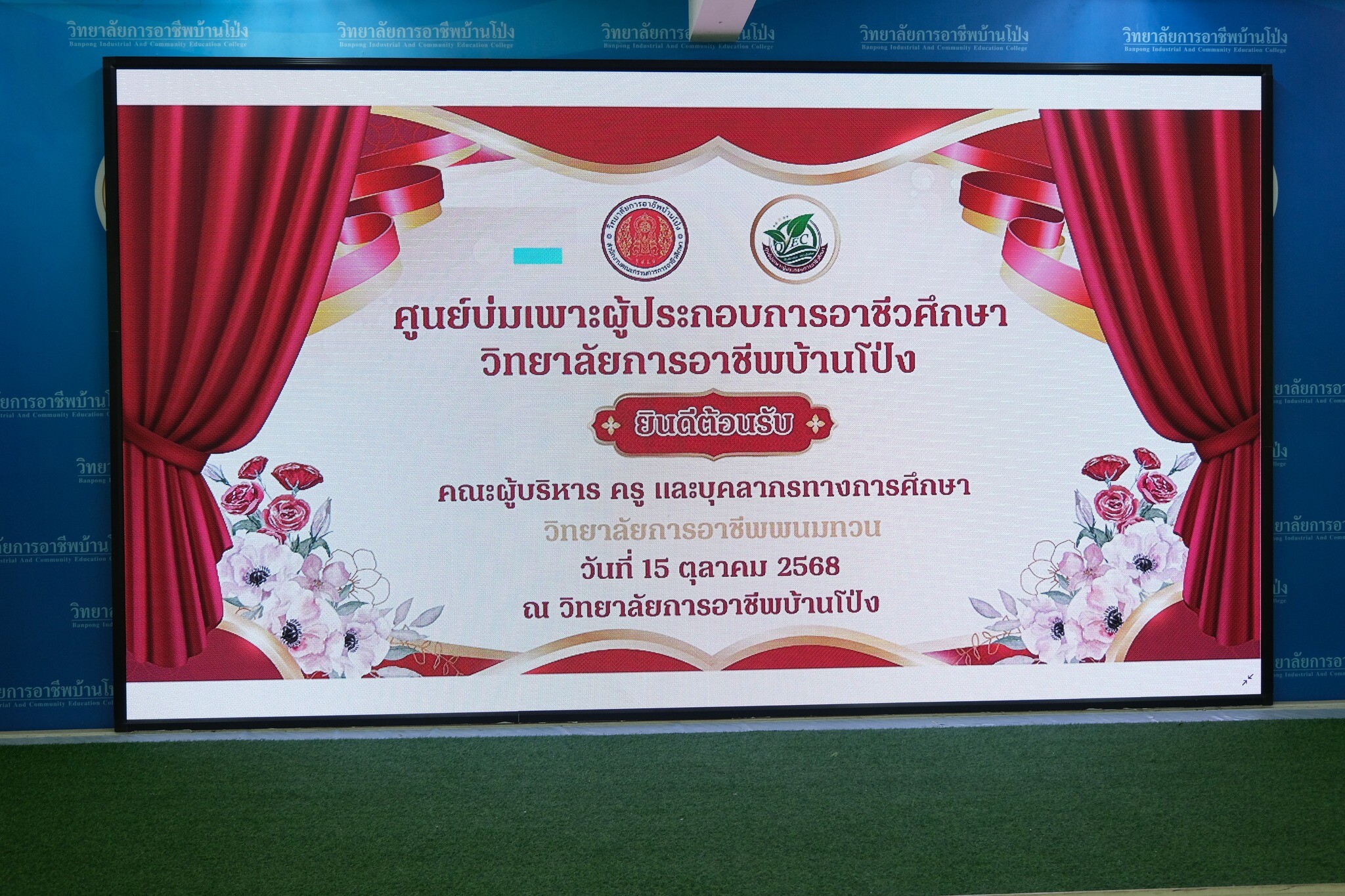 วันที่ 15 ตุลาคม 2568 ดร.พัฒนกิจ วงค์ลาศ ผู้อำนวยการวิทยาลัยการอาชีพบ้านโป่ง พร้อมด้วยคณะผู้บริหาร ครู และบุคลากรทางการศึกษา ร่วมต้อนรับ คณะศึกษาดูงาน ผู้บริหาร คณะครู และบุคลากรทางการศึกษา จากวิทยาลัยการอาชีพพนมทวน เข้าศึกษาดูงานศูนย์บ่มเพาะผู้ประกอบการอาชีวศึกษา และองค์การนักวิชาชีพในอนาคตแห่งประเทศไทย พร้อมร่วมแสดงความยินดี กับนางสาวสุพัตรา ใจเที่ยง เนื่องในโอกาสได้ย้ายมาดำรงตำแหน่ง ครู ณ วิทยาลัยการอาชีพบ้านโป่ง