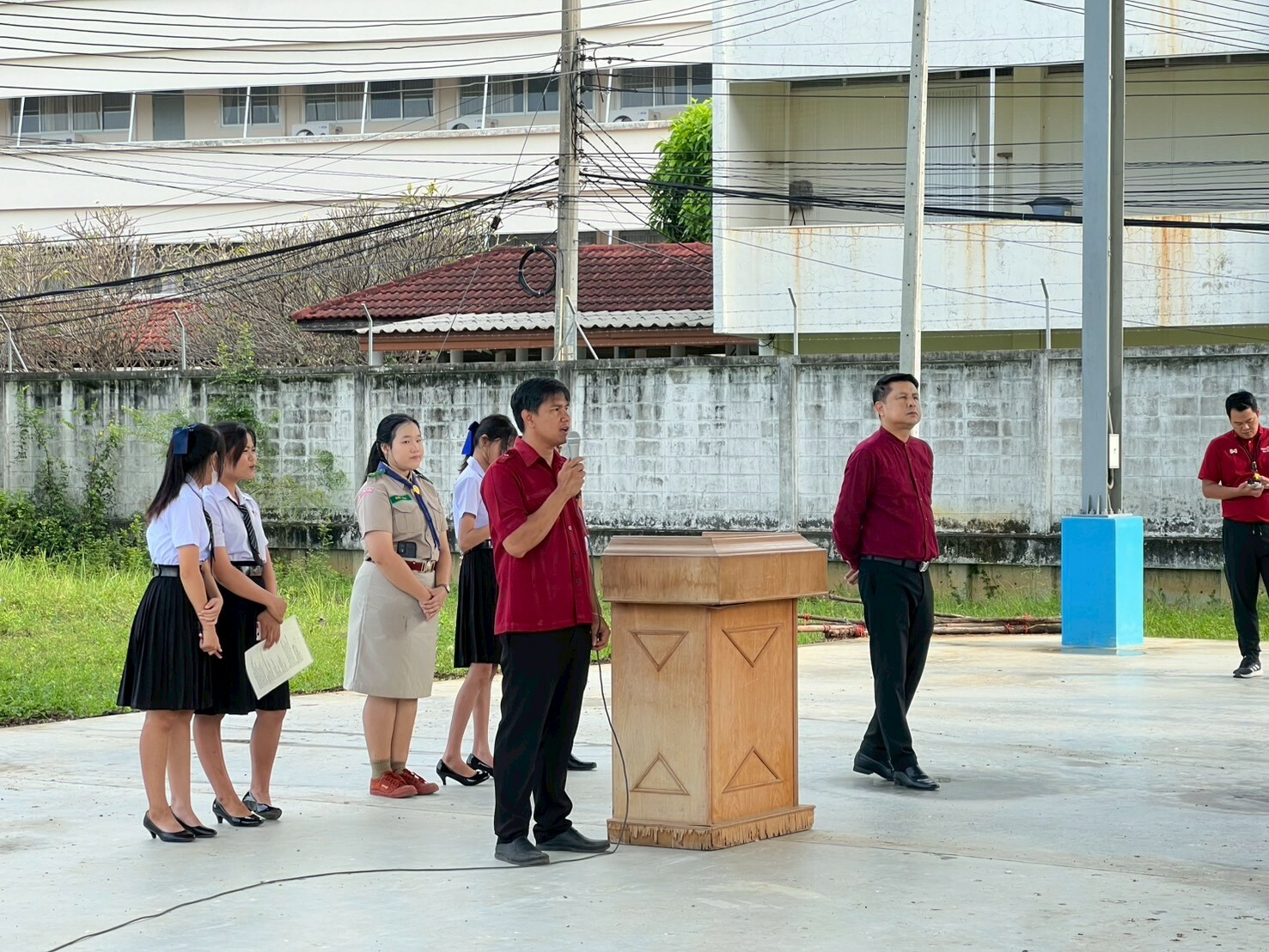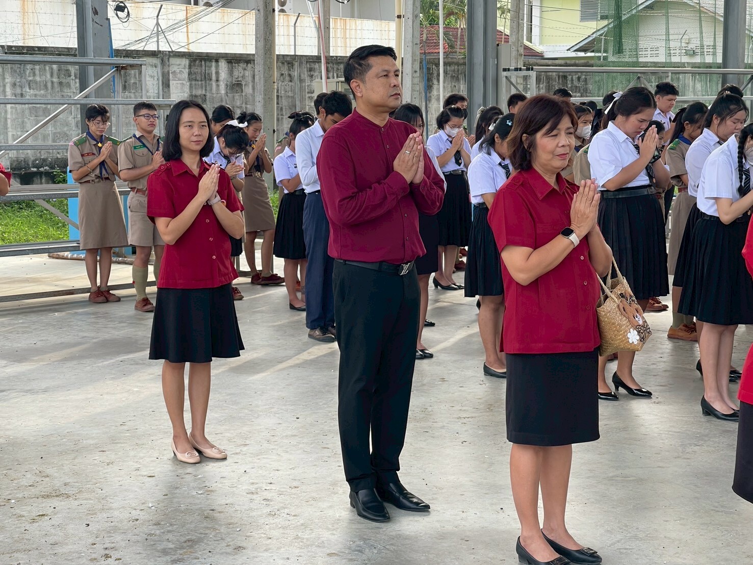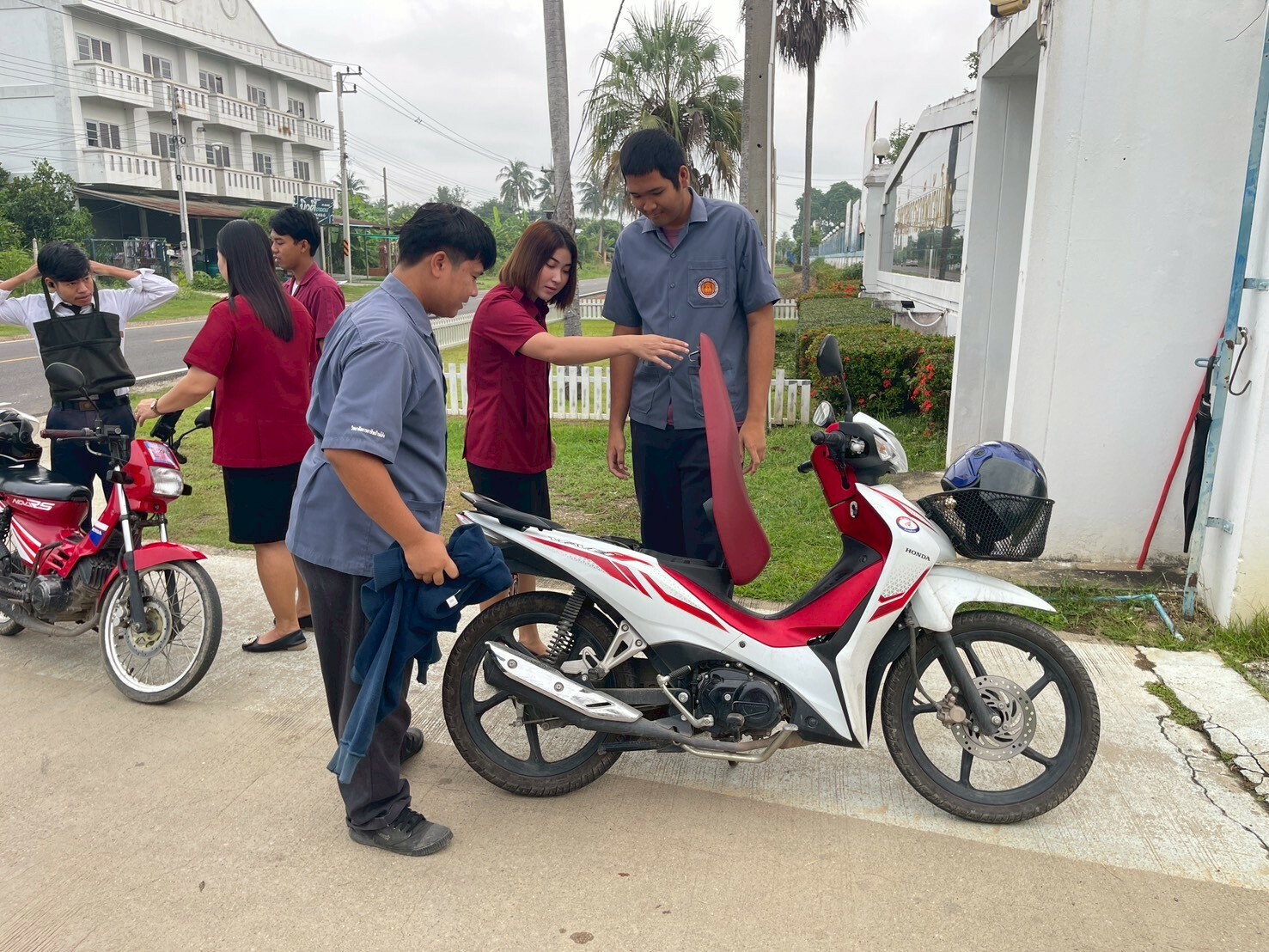 วันที่ 14 ตุลาคม 2568 ดร.พัฒนกิจ วงค์ลาศ ผู้อำนวยการวิทยาลัยการอาชีพบ้านโป่ง มอบหมายให้ คณะผู้บริหาร ครู บุคลากรทางการศึกษา ให้การต้อนรับดูแลความเรียบร้อยของนักเรียน นักศึกษาและให้โอวาทแจ้งข่าวสาร แก่นักเรียน นักศึกษา วิทยาลัยการอาชีพบ้านโป่ง ประจำภาคเรียนที่ 2/2568