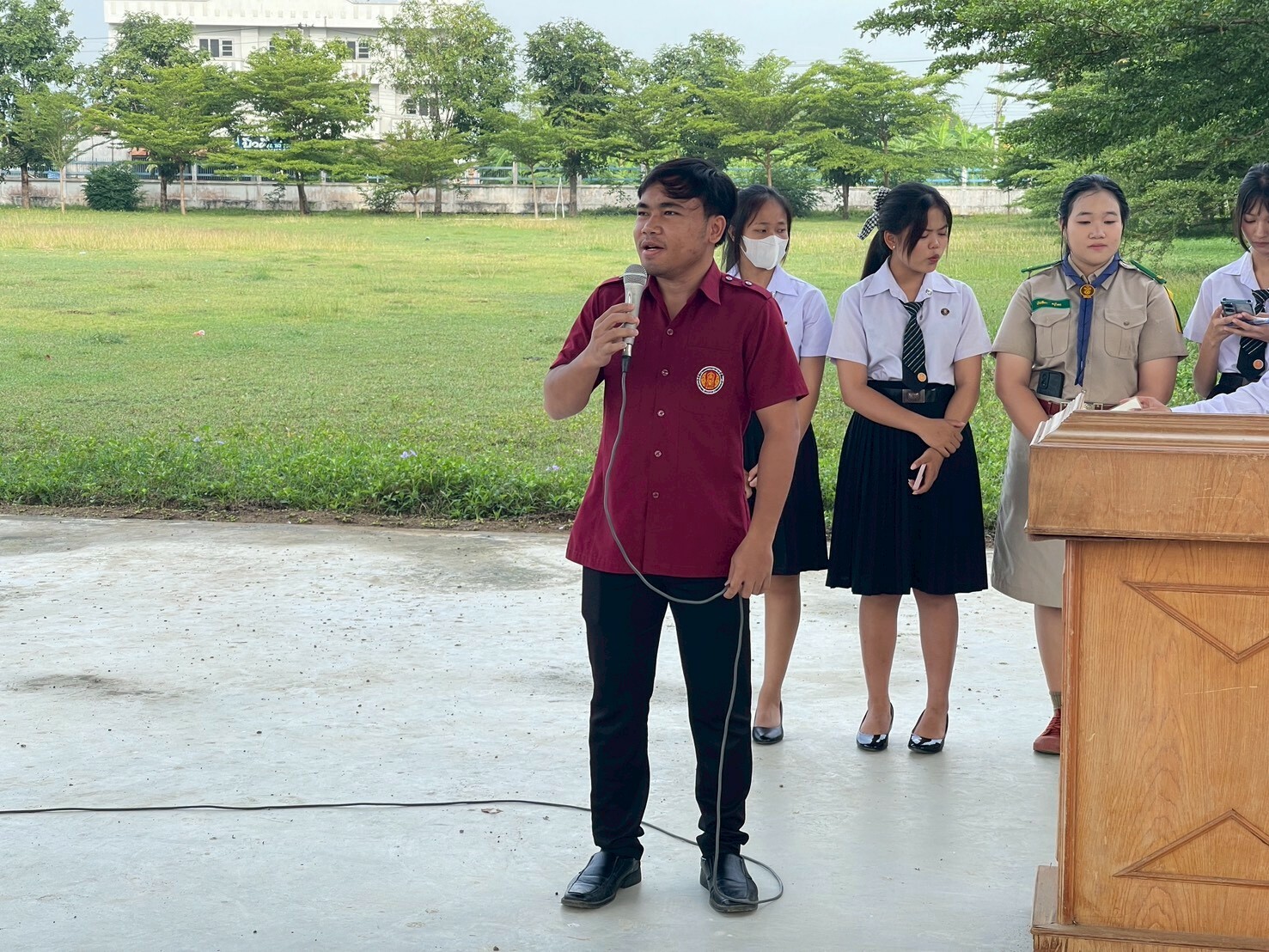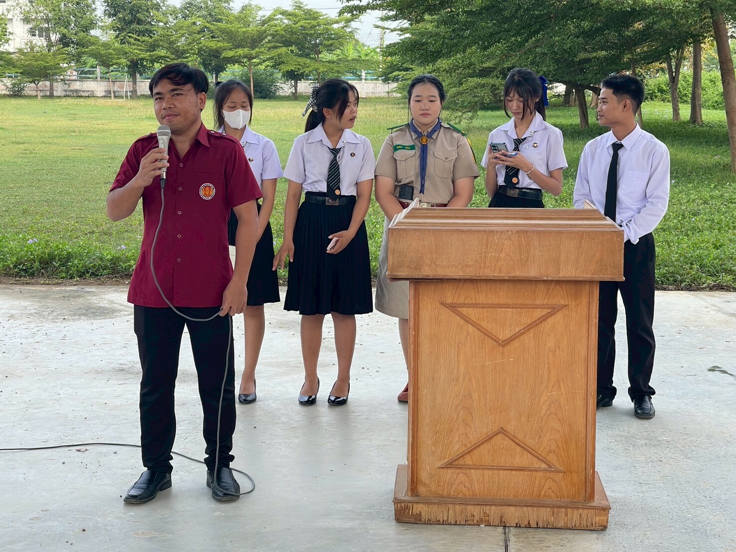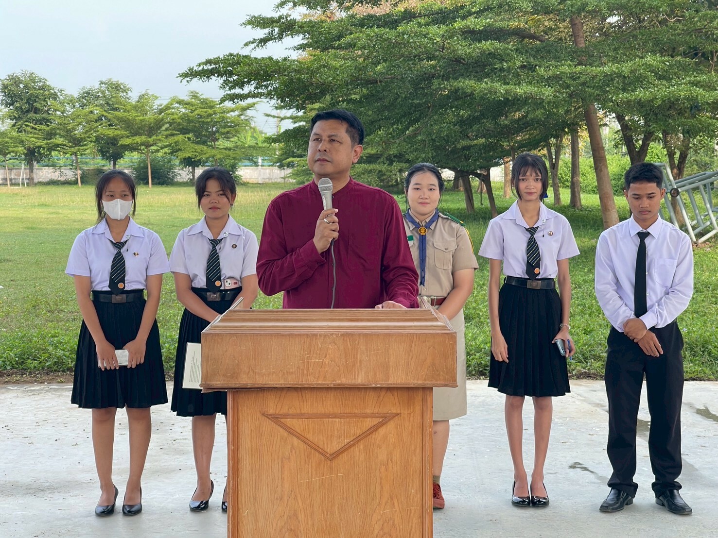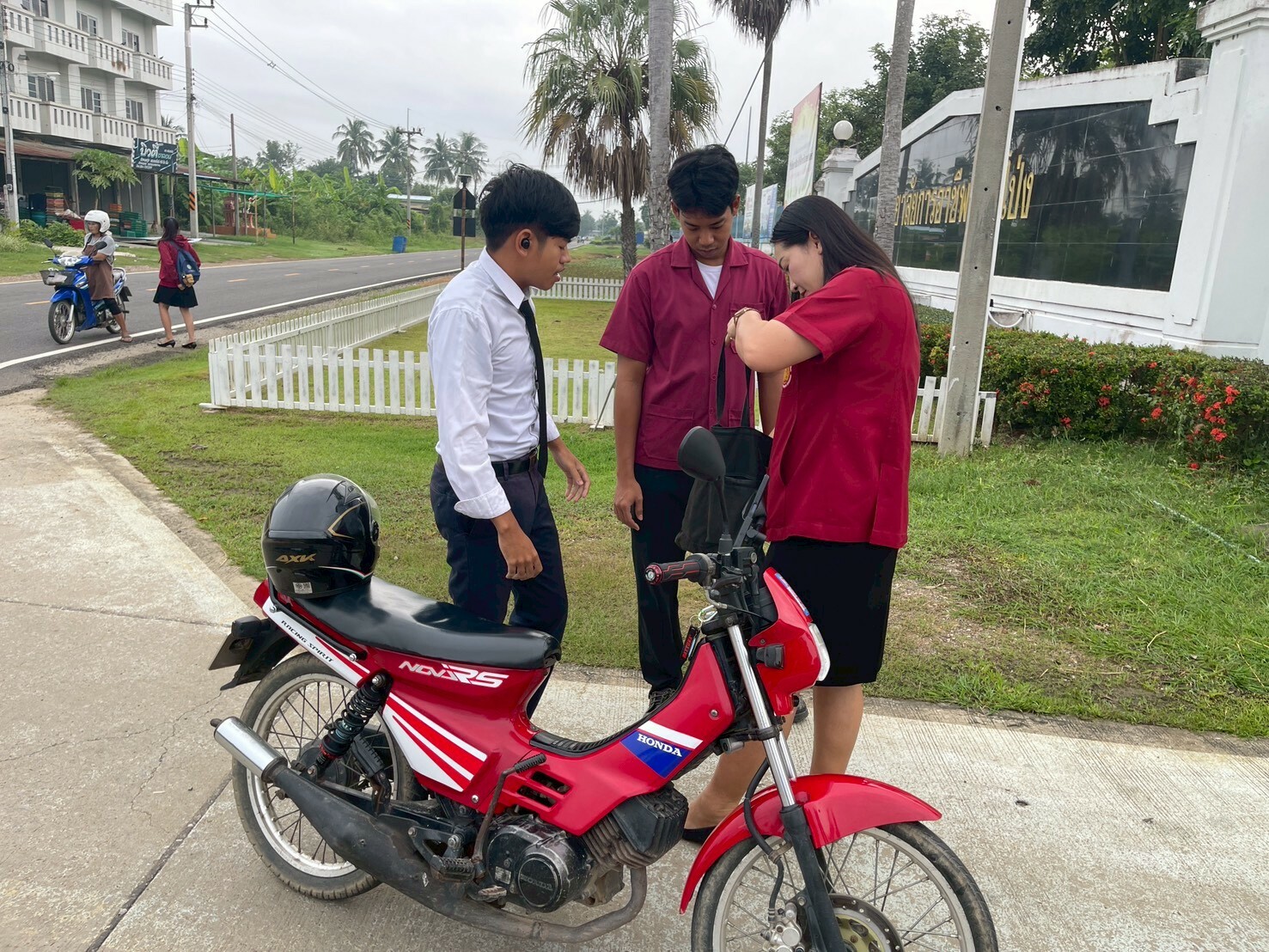 วันที่ 14 ตุลาคม 2568 ดร.พัฒนกิจ วงค์ลาศ ผู้อำนวยการวิทยาลัยการอาชีพบ้านโป่ง มอบหมายให้ คณะผู้บริหาร ครู บุคลากรทางการศึกษา ให้การต้อนรับดูแลความเรียบร้อยของนักเรียน นักศึกษาและให้โอวาทแจ้งข่าวสาร แก่นักเรียน นักศึกษา วิทยาลัยการอาชีพบ้านโป่ง ประจำภาคเรียนที่ 2/2568