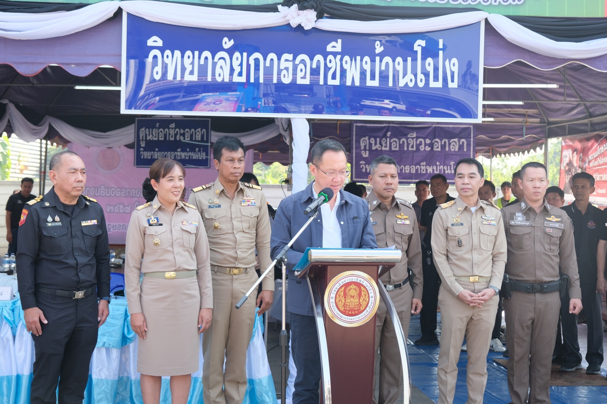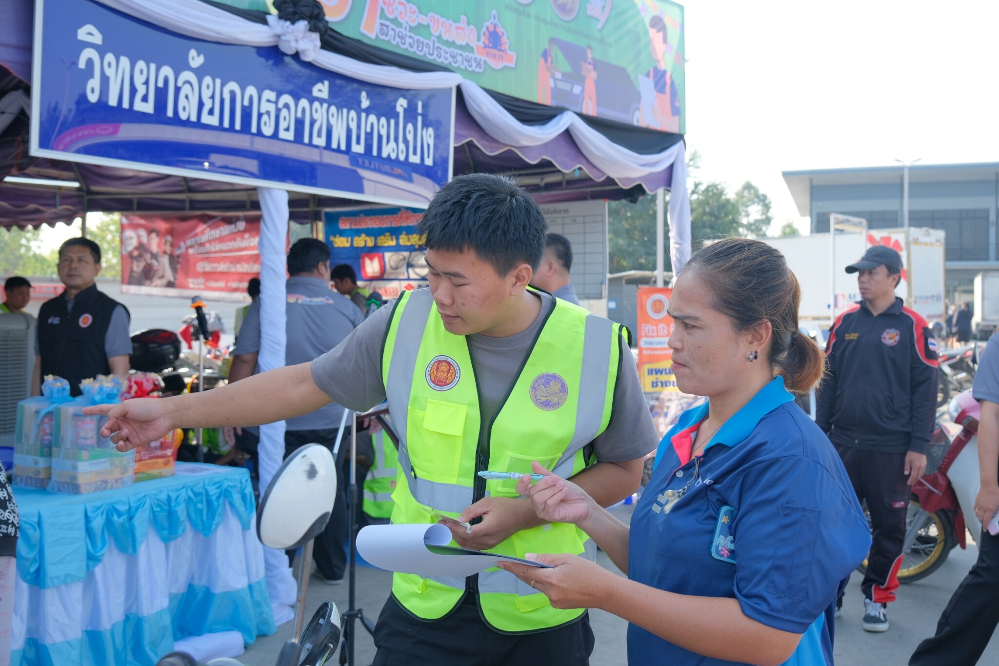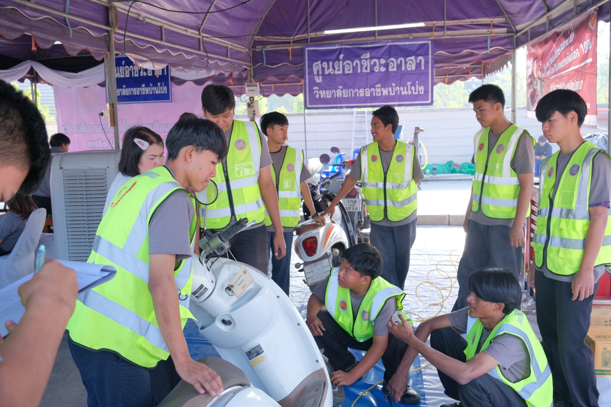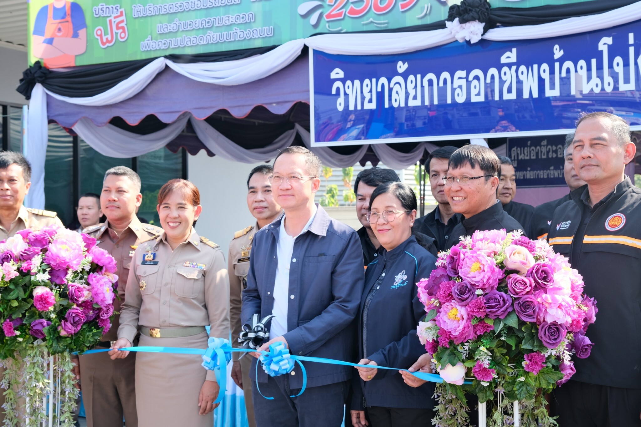 วันที่ 30 ธันวาคม 2568 ดร.พัฒนกิจ วงค์ลาศ ผู้อำนวยการวิทยาลัยการอาชีพบ้านโป่ง พร้อมด้วย นายอนุชา จันทร์สนิท รองผู้อำนวยการ คณะครู บุคลากรทางการศึกษา และนักเรียน นักศึกษา ร่วมจัดพิธีเปิดหน่วยอาชีวะ – ขนส่ง อาสา ช่วยประชาชน : เทศกาลปีใหม่ 2569 ในระหว่างวันที่ 29 ธันวาคม 2568 ถึง 5 มกราคม 2569 โดยได้รับเกียรติจาก นายอัครเดช วงษ์พิทักษ์โรจน์ อดีตสมาชิกสภาผู้แทนราษฎร์ จังหวัดราชบุรี เขต 4 เป็นประธานกล่าวเปิดในพิธี พร้อมด้วย นายอำเภอบ้านโป่ง ศึกษาธิการจังหวัดราชบุรี ขนส่งจังหวัดราชบุรี อำเภอบ้านโป่ง ผู้บริหาร สอจ ราชบุรี ผู้กำกับสถานีตำรวจภูธรอำเภอบ้านโป่งและหน่วยงานราชการภาครัฐและเอกชนในอำเภอบ้านโป่ง เข้าร่วมในพิธีเปิดพร้อมเยี่ยมชมจุดบริการประชาชน ณ ปั๊มน้ำมันทูเก็ตเตอร์ออยล์ (2017) อำเภอบ้านโป่ง จังหวัดราชบุรี