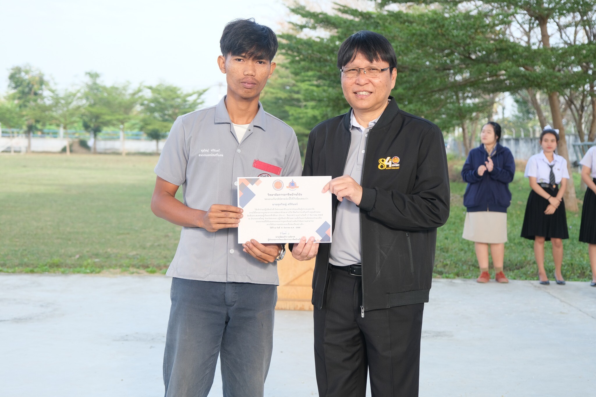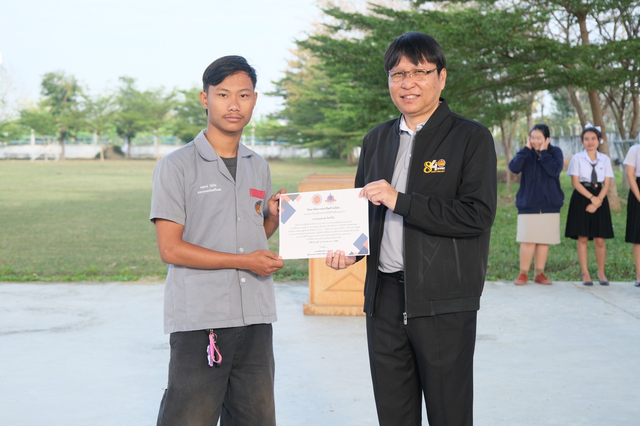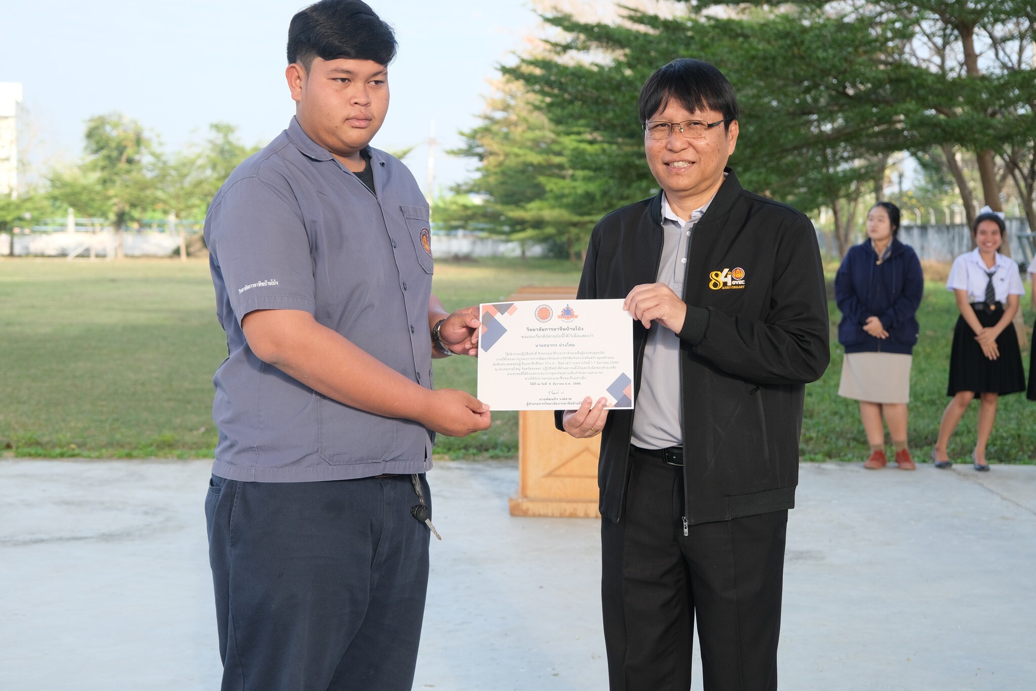 วันที่ 9 ธันวาคม 2568 ดร.พัฒนกิจ วงค์ลาศ ผู้อำนวยการวิทยาลัยการอาชีพบ้านโป่ง มอบเกียรติบัตรให้แก่ตัวแทนครูและนักเรียน นักศึกษา แผนกวิชาช่างยนต์ และช่างไฟฟ้ากำลัง จำนวน 8 คน เป็นตัวแทนช่วยเหลือผู้ประสบอุทกภัย จัดตั้งจุดบริการ Fix it – จิตอาสา เพื่อซ่อมแซมเครื่องใช้ไฟฟ้า รถจักรยานยนต์ในพื้นที่ประสบอุทกภัยจังหวัดสงขลา