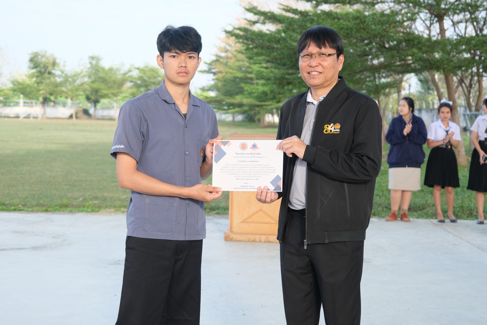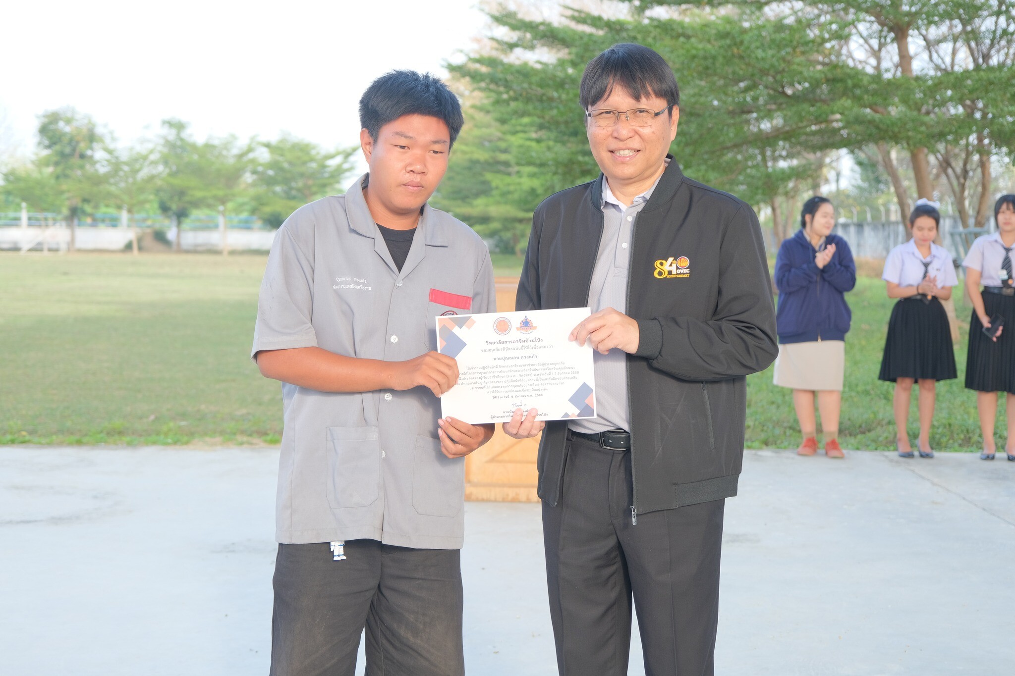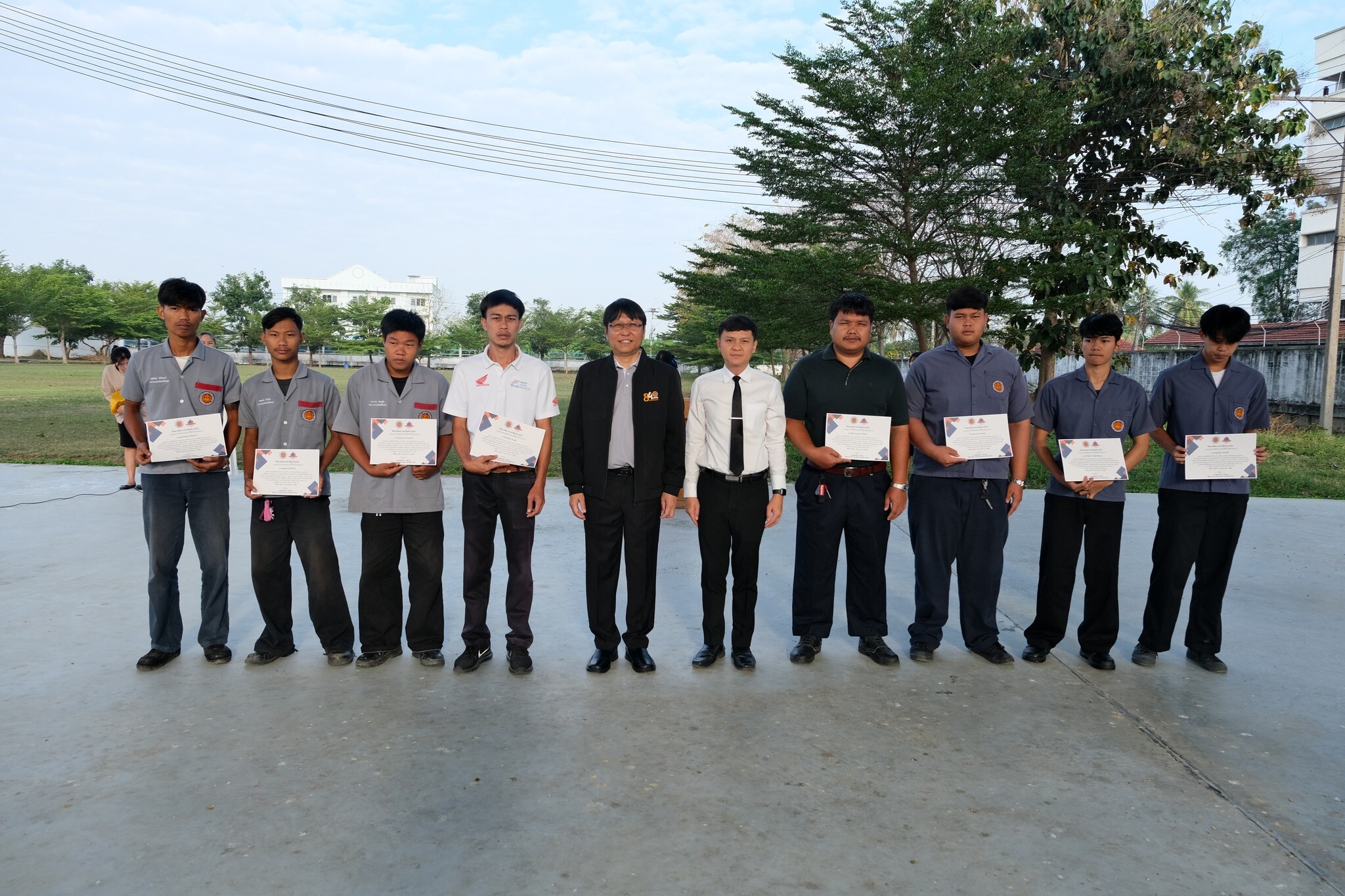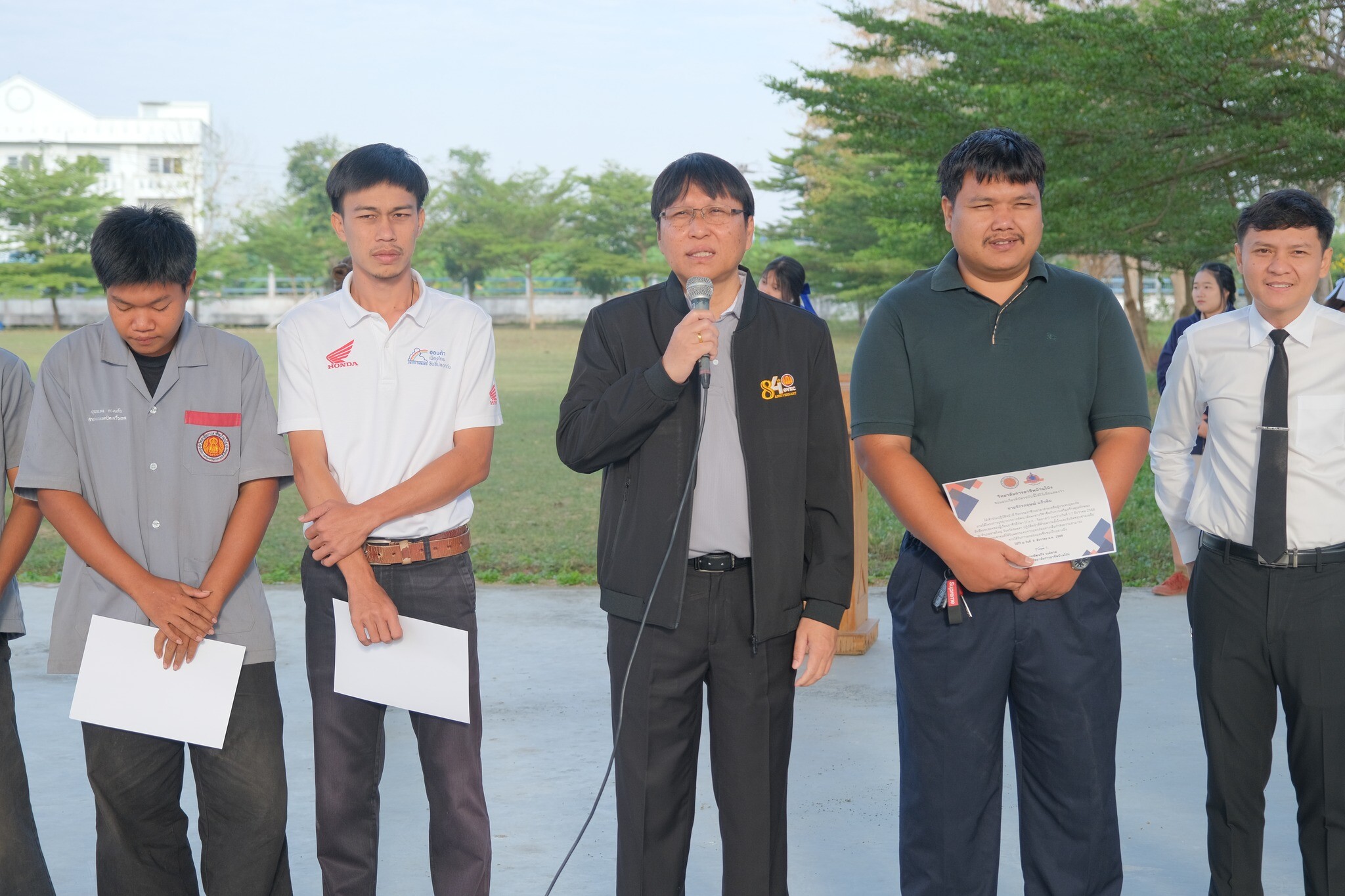 วันที่ 9 ธันวาคม 2568 ดร.พัฒนกิจ วงค์ลาศ ผู้อำนวยการวิทยาลัยการอาชีพบ้านโป่ง มอบเกียรติบัตรให้แก่ตัวแทนครูและนักเรียน นักศึกษา แผนกวิชาช่างยนต์ และช่างไฟฟ้ากำลัง จำนวน 8 คน เป็นตัวแทนช่วยเหลือผู้ประสบอุทกภัย จัดตั้งจุดบริการ Fix it – จิตอาสา เพื่อซ่อมแซมเครื่องใช้ไฟฟ้า รถจักรยานยนต์ในพื้นที่ประสบอุทกภัยจังหวัดสงขลา