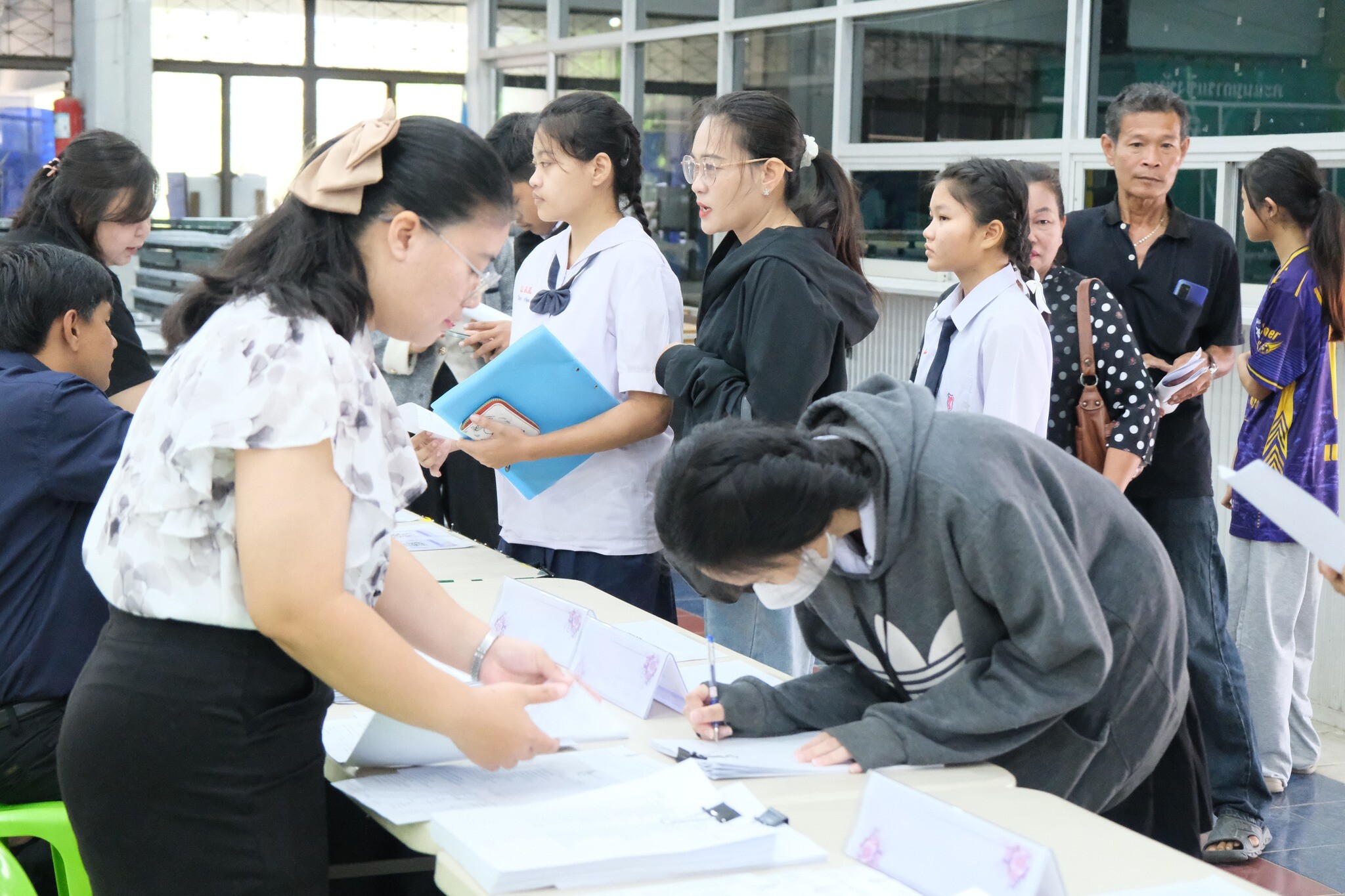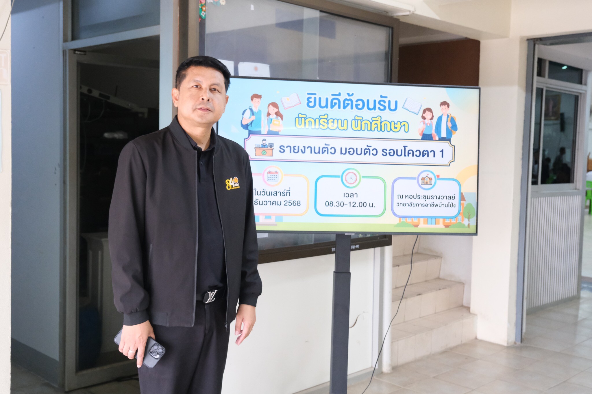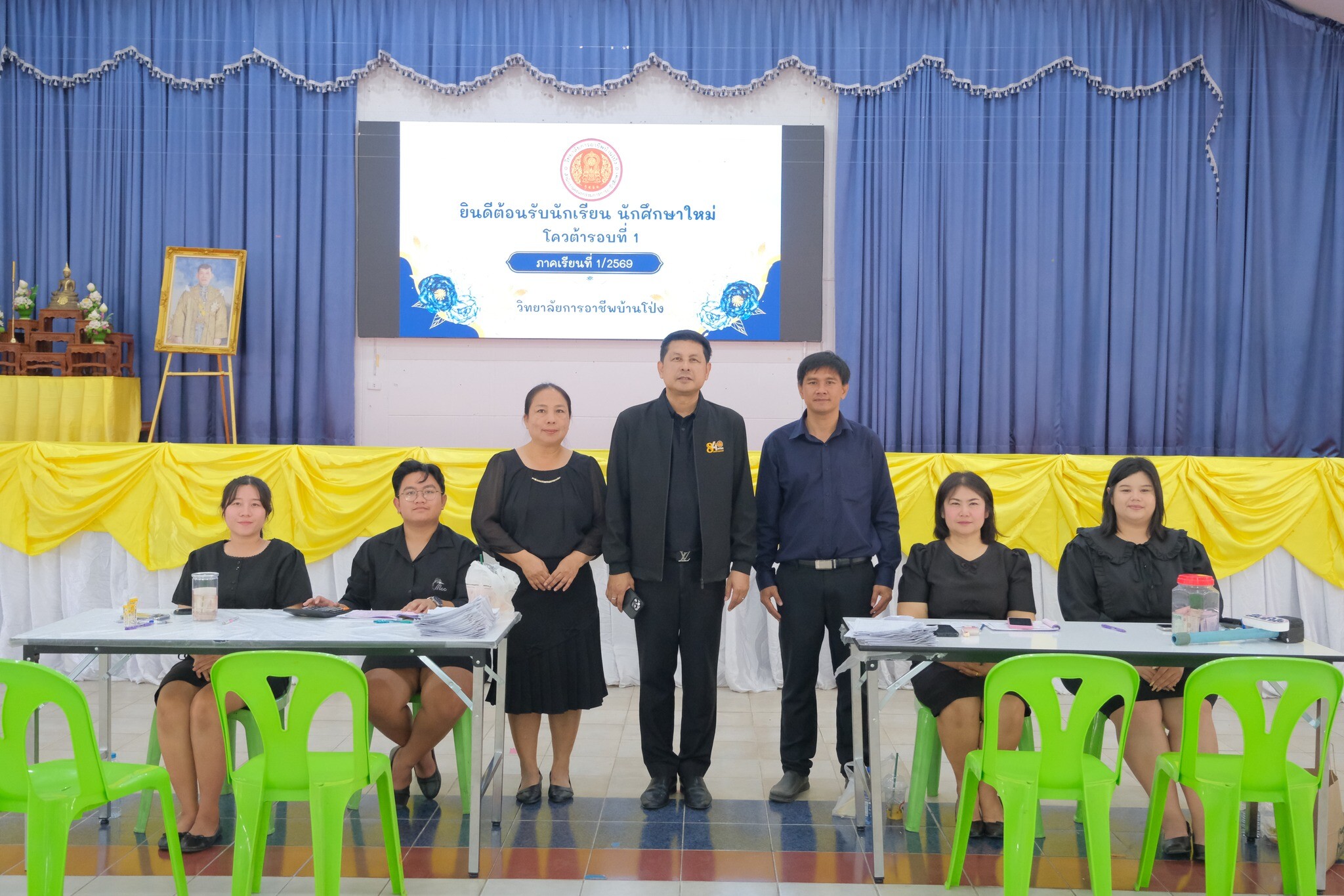 วันที่ 13 ธันวาคม 2568 ดร.พัฒนกิจ วงค์ลาศ ผู้อำนวยการวิทยาลัยการอาชีพบ้านโป่ง พร้อมด้วยคณะผู้บริหาร ครูและบุคลากรทางการศึกษา ร่วมต้อนรับนักเรียน นักศึกษา และผู้ปกครอง ที่มารายงานตัว ลงทะเบียน นักเรียน นักศึกษาใหม่ ประจำปีการศึกษา 2569 (รอบโควตา รอบที่ 1) ณ หอประชุมรางวาลย์ วิทยาลัยการอาชีพบ้านโป่ง