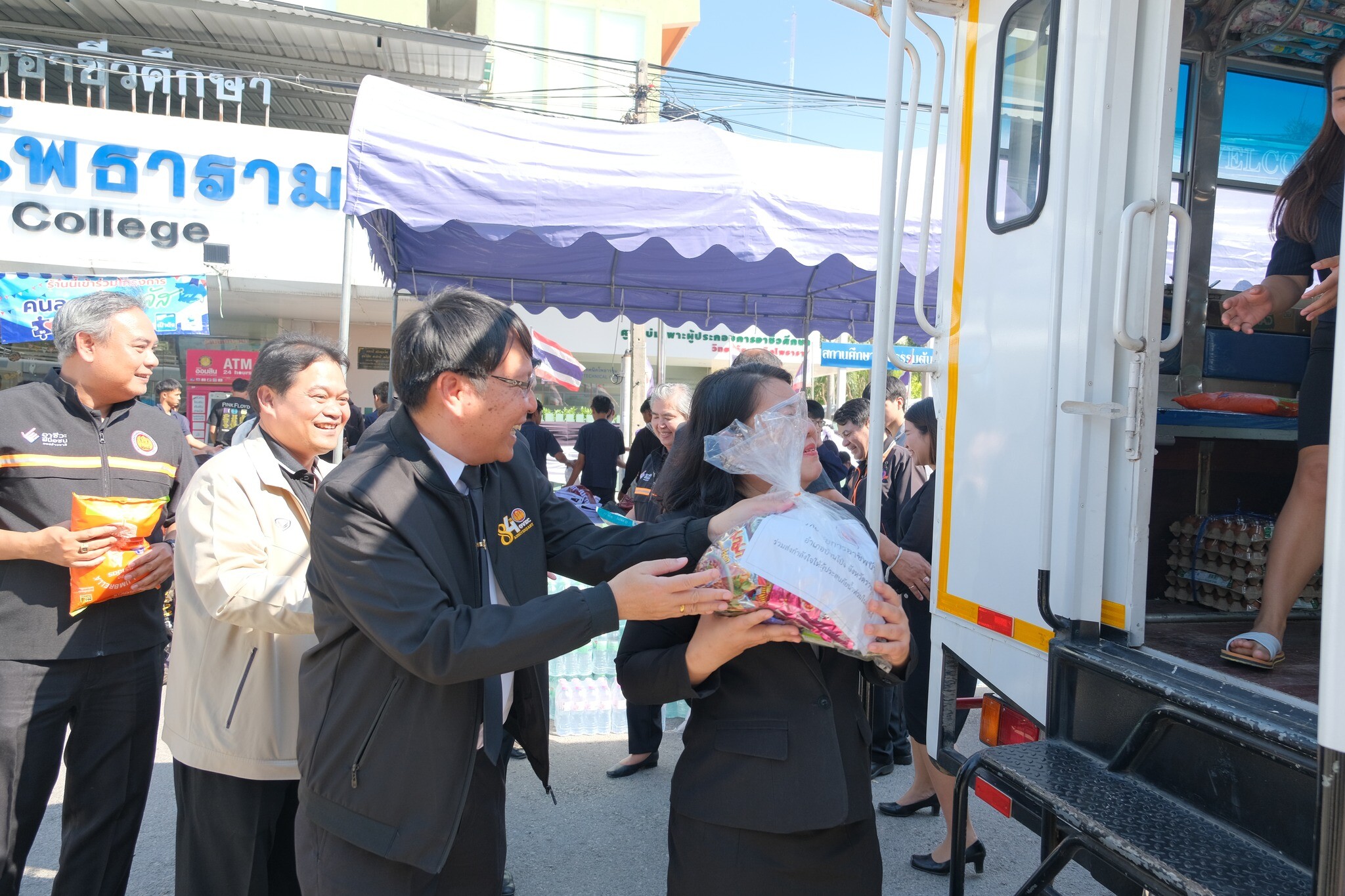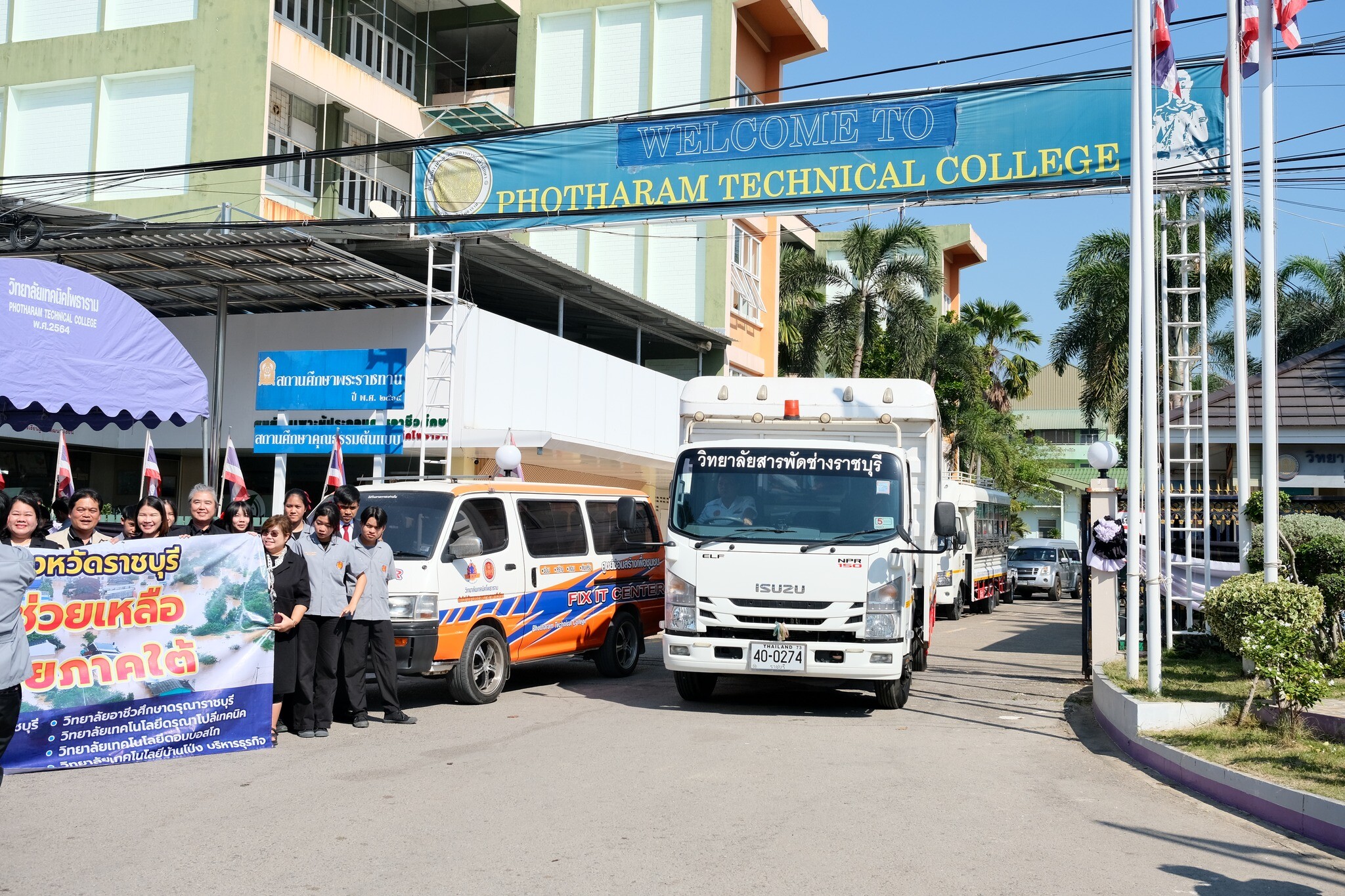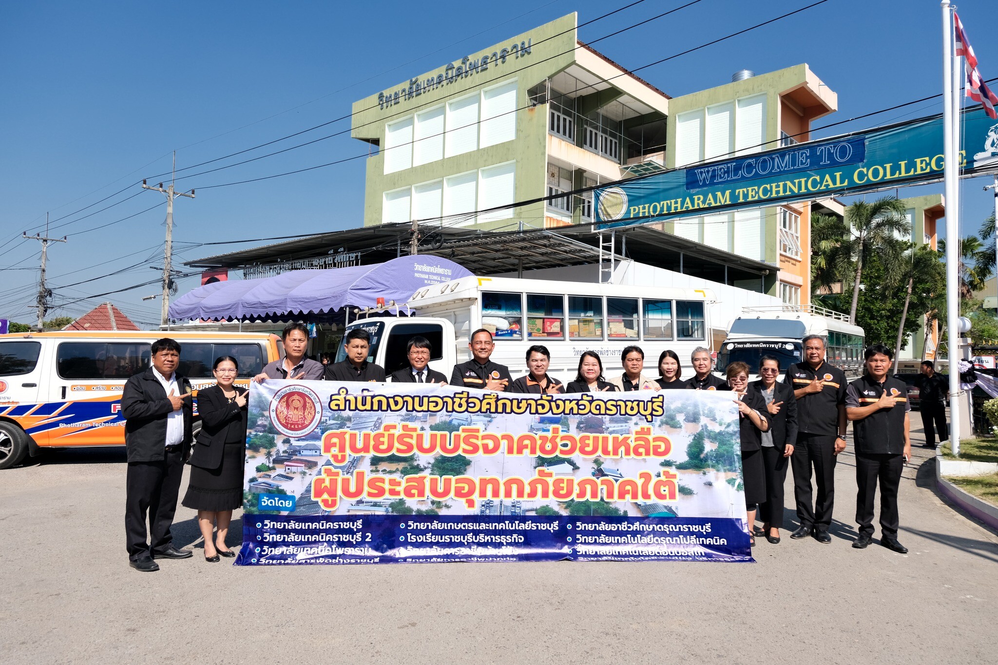 วันที่ 2 ธันวาคม 2568 ดร.พัฒนกิจ วงค์ลาศ ผู้อำนวยการวิทยาลัยการอาชีพบ้านโป่ง พร้อมด้วย นายอนุชา จันทร์สนิท รองผู้อำนวยการ ได้เข้าร่วมพิธี ปล่อยขบวนรถขนส่งสิ่งของบริจาค จาก “ศูนย์รับบริจาคช่วยเหลือผู้ประสบอุทกภัยภาคใต้” ของสำนักงานอาชีวศึกษาจังหวัดราชบุรี โดยสิ่งของเครื่องใช้ที่จำเป็น อาทิ ข้าวสาร อาหารแห้ง และเครื่องอุปโภคบริโภค จะถูกนำไปช่วยเหลือผู้ประสบอุทกภัยในพื้นที่อำเภอหาดใหญ่ จังหวัดสงขลา ณ วิทยาลัยเทคนิคโพธาราม