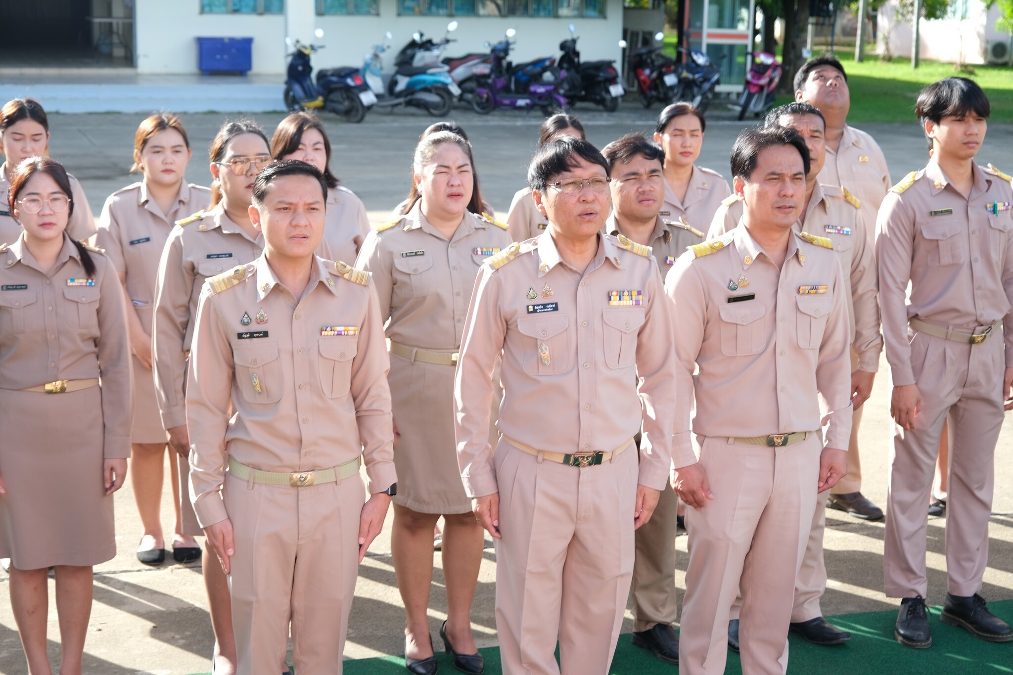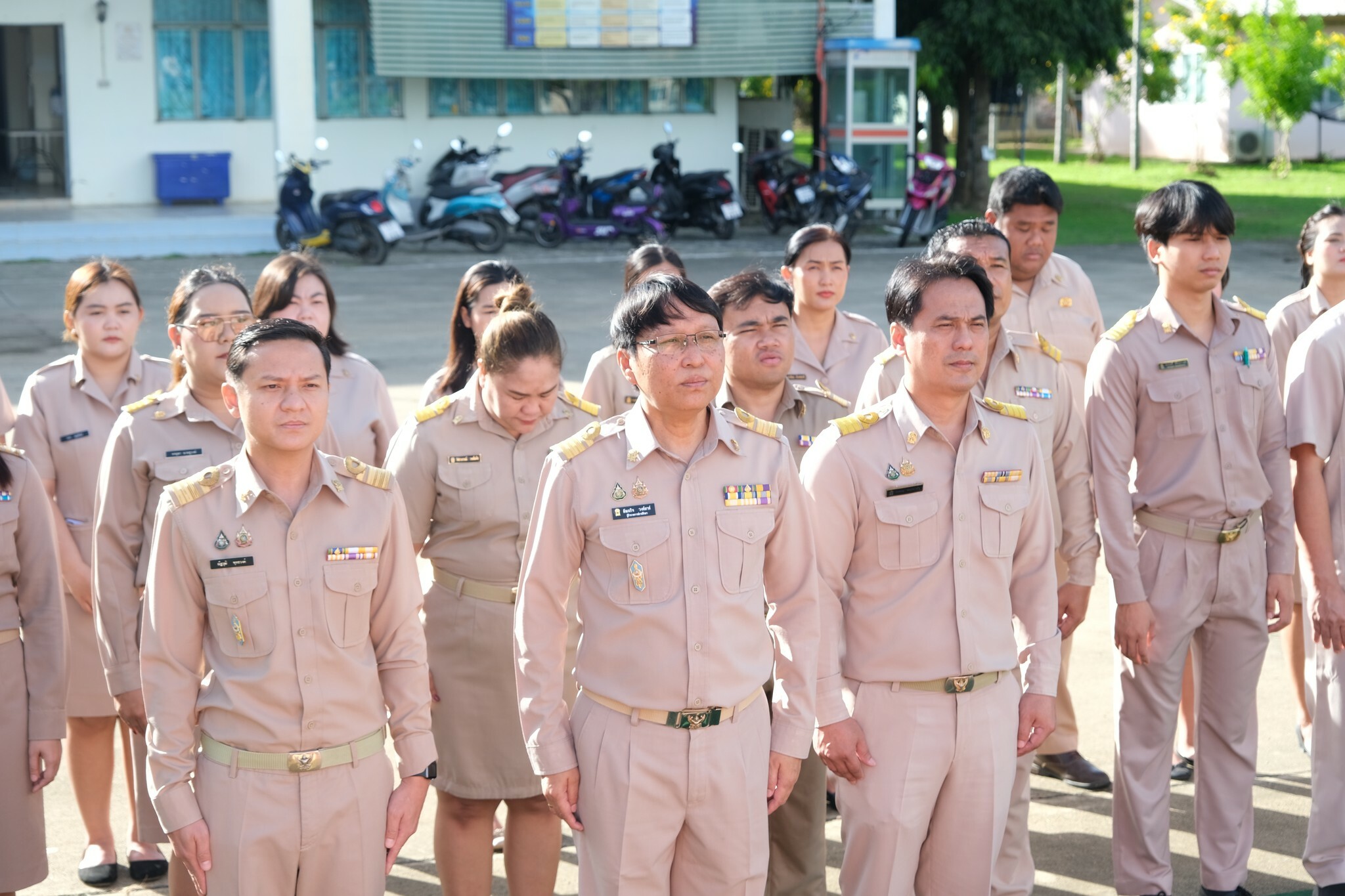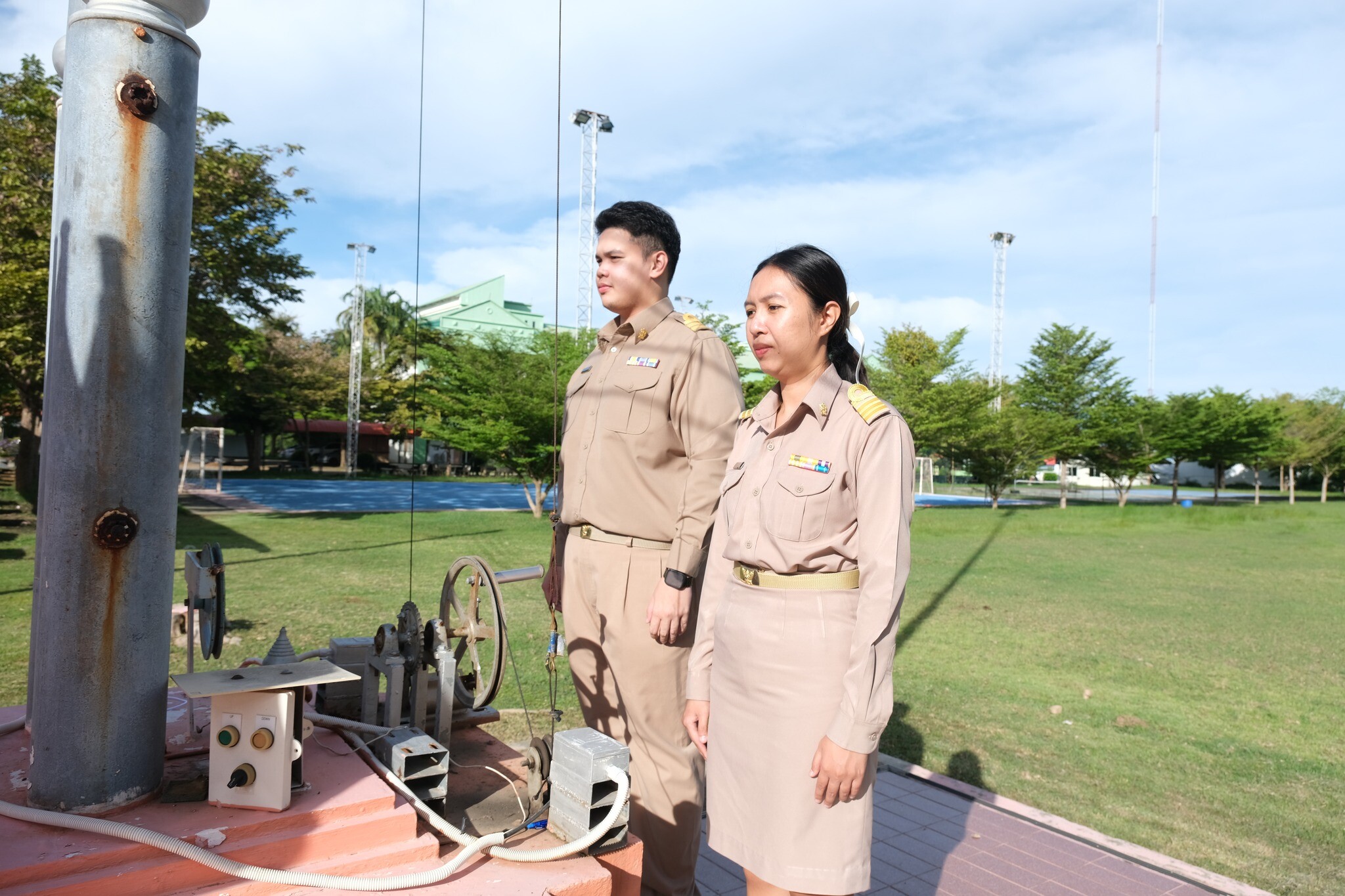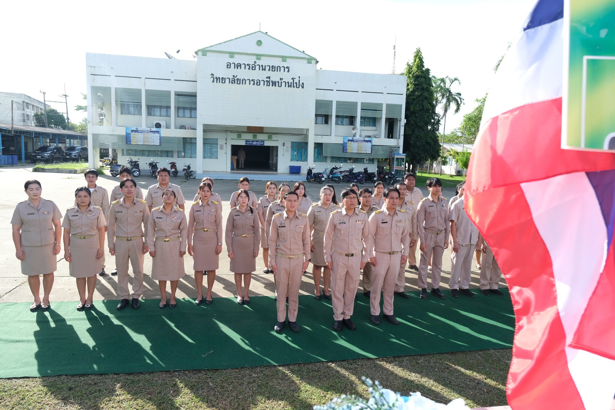 วันที่ 29 กันยายน 2568 ดร.พัฒนกิจ วงค์ลาศ ผู้อำนวยการวิทยาลัยการอาชีพบ้านโป่ง พร้อมด้วยคณะผู้บริหาร ครู และบุคลากรทางการศึกษา ร่วมจัดกิจกรรมเคารพธงชาติ และร้องเพลงชาติไทย เนื่องในวันพระราชทานธงชาติไทย ณ ลานอเนกประสงค์ หอประชุมรางวาลย์ วิทยาลัยการอาชีพบ้านโป่ง