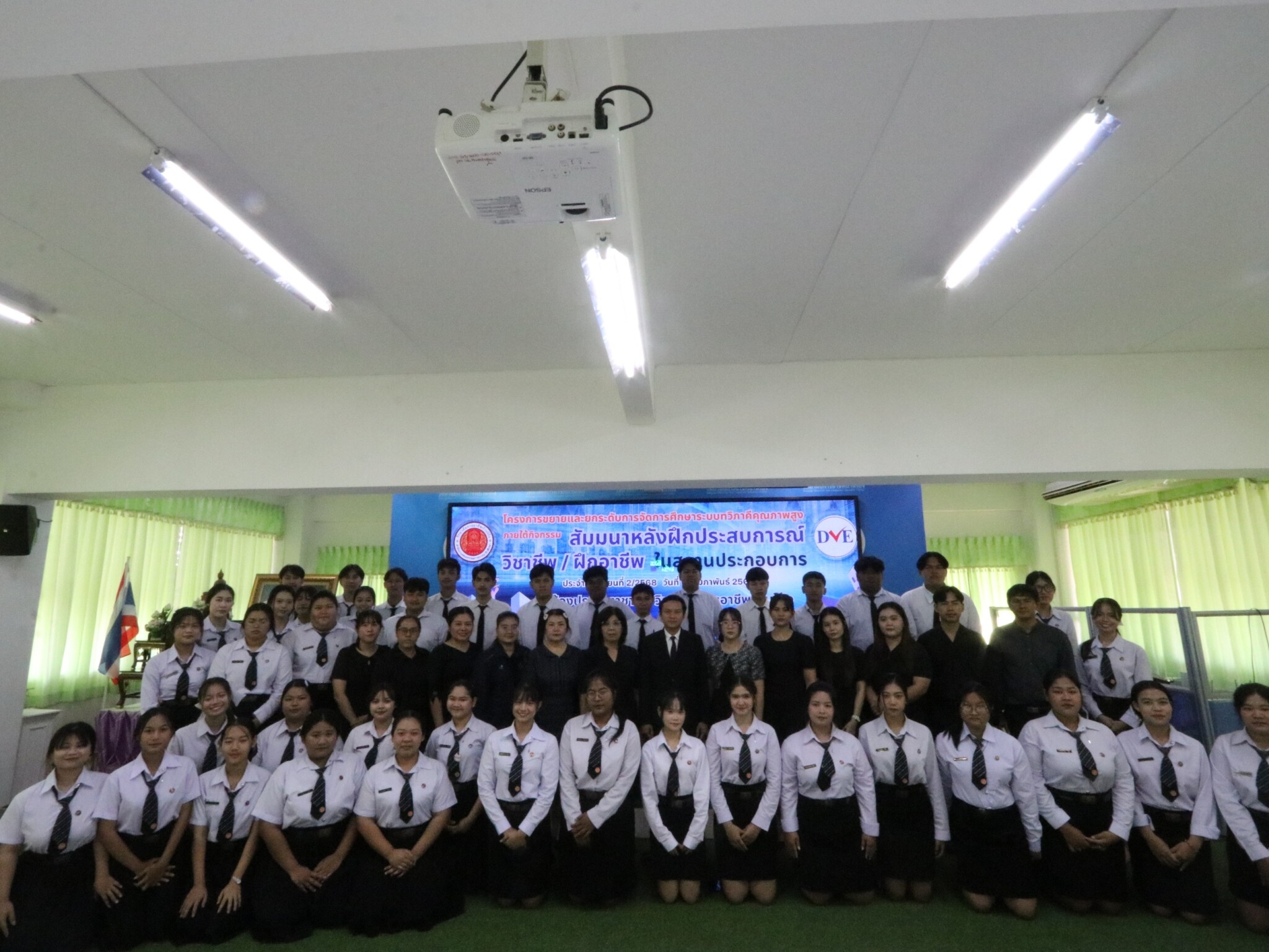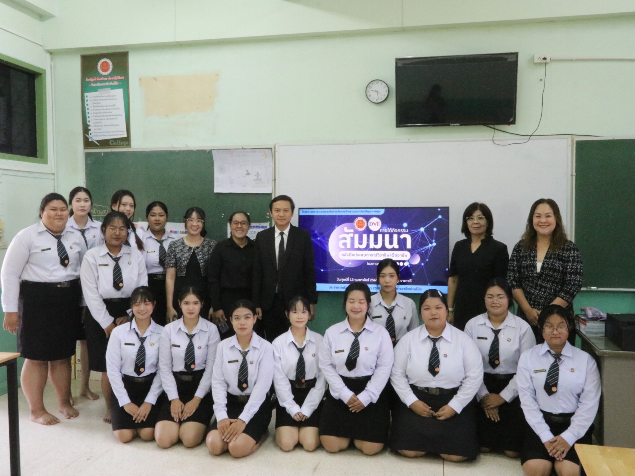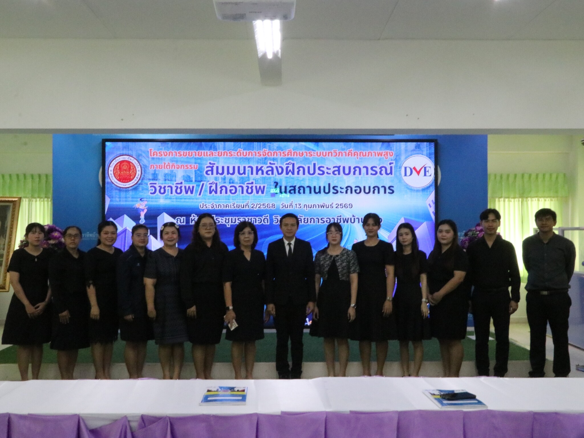 วันที่ 13 กุมภาพันธ์ 2569 ดร.พัฒนกิจ วงค์ลาศ ผู้อำนวยการวิทยาลัยการอาชีพบ้านโป่ง มอบหมายนายณัฐวุฒิ พุทธวงค์ รองผู้อำนวยการ พร้อมด้วย คณะครู บุคลากรทางการศึกษาและนักเรียน นักศึกษาร่วมจัดโครงการขยายและยกระดับการจัดการศึกษาระบบทวิภาคีคุณภาพสูง ภายใต้กิจกรรม สัมมนาหลังฝึกประสบการณ์สมรรถนะวิชาชีพ / ฝึกวิชาชีพ ในสถานประกอบการ ประจำภาคเรียนที่ 2 ปีการศึกษา 2568 ณ ห้องประชุมราชาวดี วิทยาลัยการอาชีพบ้านโป่ง