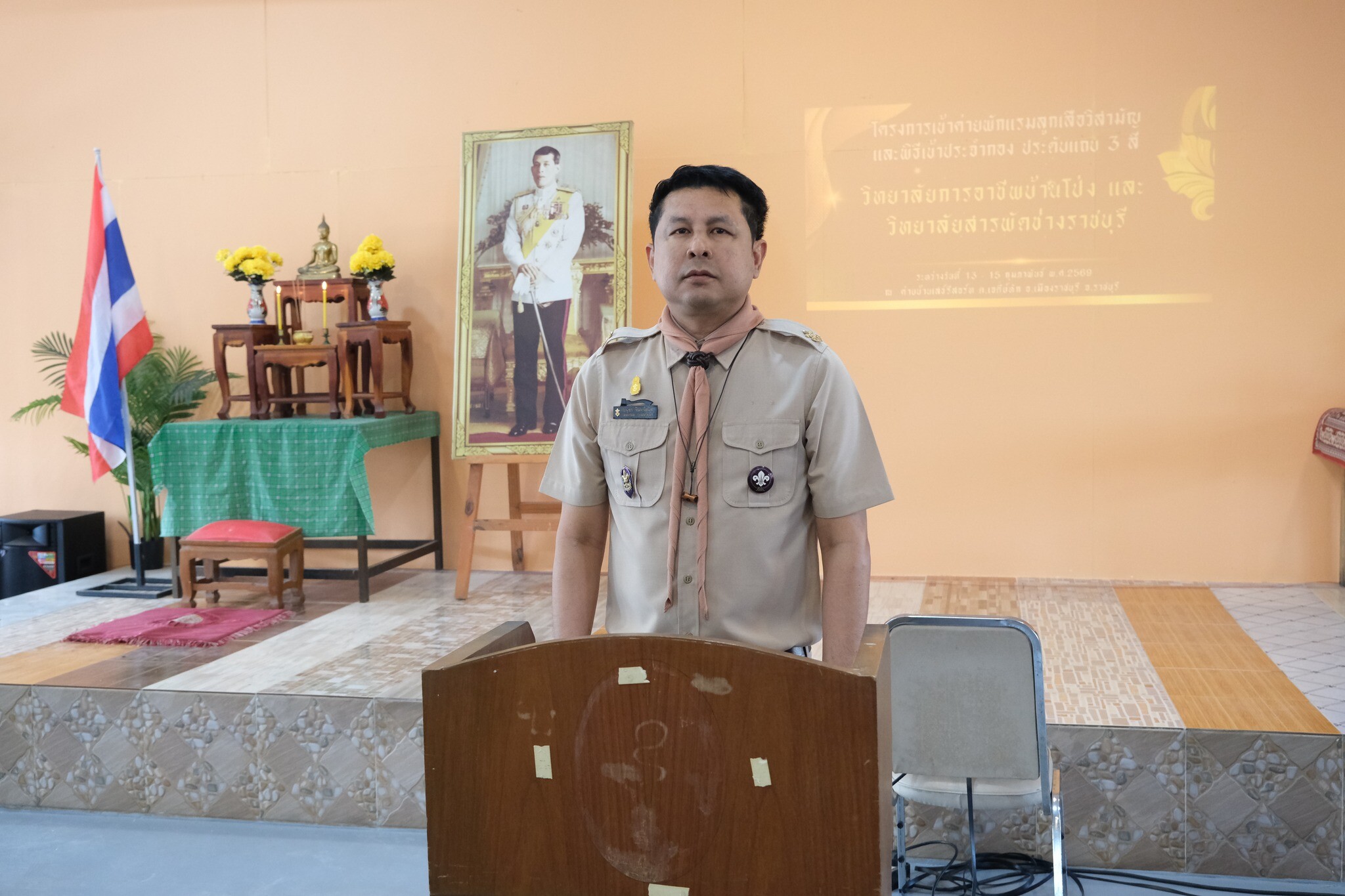 วันที่ 13 – 15 กุมภาพันธ์ 2569 ดร.พัฒนกิจ วงค์ลาศ ผู้อำนวยการวิทยาลัยการอาชีพบ้านโป่ง มอบหมายให้นายอนุชา จันทร์สนิท รองผู้อำนวยการ พร้อมด้วย ผู้กำกับและลูกเสือวิสามัญ ร่วมจัดโครงการเข้าค่ายพักแรมลูกเสือวิสามัญ และเข้าพิธีประจำกอง (ประดับแถบ3สี) ประจำปีการศึกษา 2568 ร่วมกับ วิทยาลัยสารพัดช่างราชบุรี ณ ค่ายบ้านเสธ์รีสอร์ท จังหวัดราชบุรี