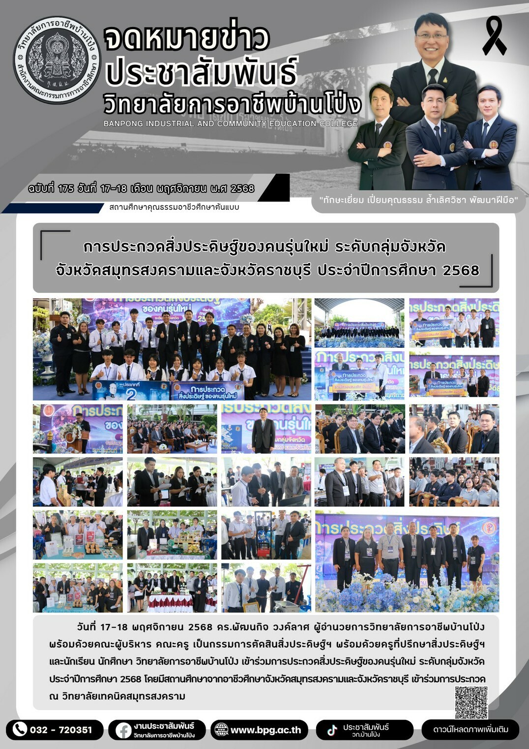 ฉบับที่ 175 การประกวดสิ่งประดิษฐ์ของคนรุ่นใหม่ ระดับกลุ่มจังหวัด จังหวัดสมุทรสงครามและจังหวัดราชบุรี ประจำปีการศึกษา 2568 18 พฤศจิกายน 256823 พฤศจิกายน 2025 นายดนุวัช ด้วงแพง จดหมายข่าว นายดนุวัช ด้วงแพง