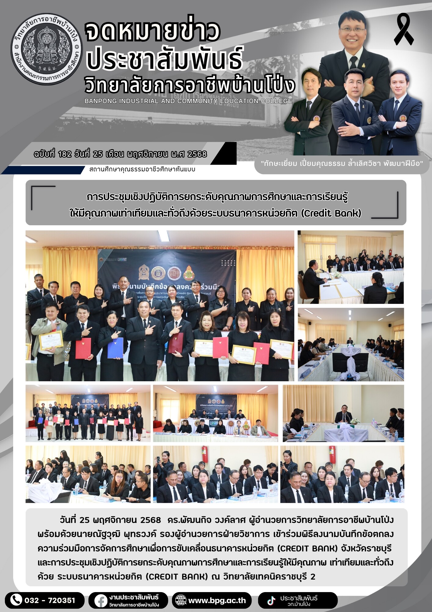 ฉบับที่ 182 การประชุมเชิงปฏิบัติการยกระดับคุณภาพการศึกษาและการเรียนรู้ให้มีคุณภาพ เท่าเทียมและทั่วถึงด้วยระบบธนาคารหน่วยกิต (Credit Bank) 25 พฤศจิกายน 25684 ธันวาคม 2025 นายดนุวัช ด้วงแพง จดหมายข่าว นายดนุวัช ด้วงแพง