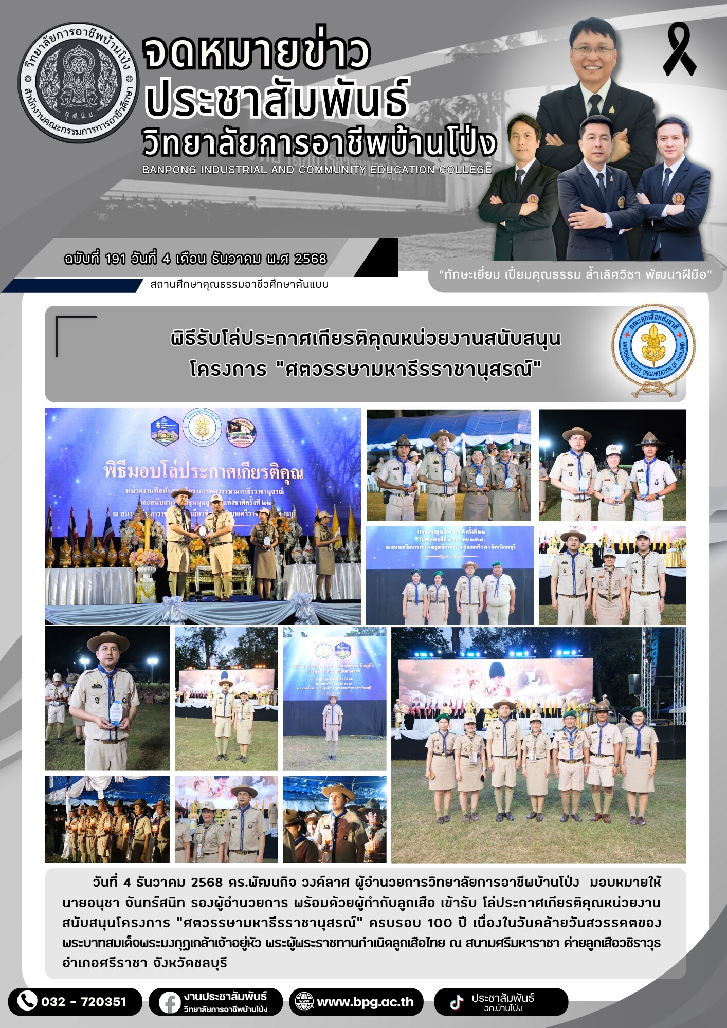 ฉบับที่ 191 พิธีรับโล่ประกาศเกียรติคุณหน่วยงานสนับสนุนโครงการ “ศตวรรษามหาธีรราชานุสรณ์“ 4 ธันวาคม 256822 ธันวาคม 2025 นายดนุวัช ด้วงแพง จดหมายข่าว นายดนุวัช ด้วงแพง