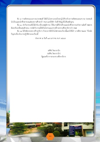 ข้อ ๙ การตัดคะแนนความประพฤติ ให้เป็นไปตามระเบียบปฏิบัติว่าด้วยการตัดคะแนนความ ประพฤติ